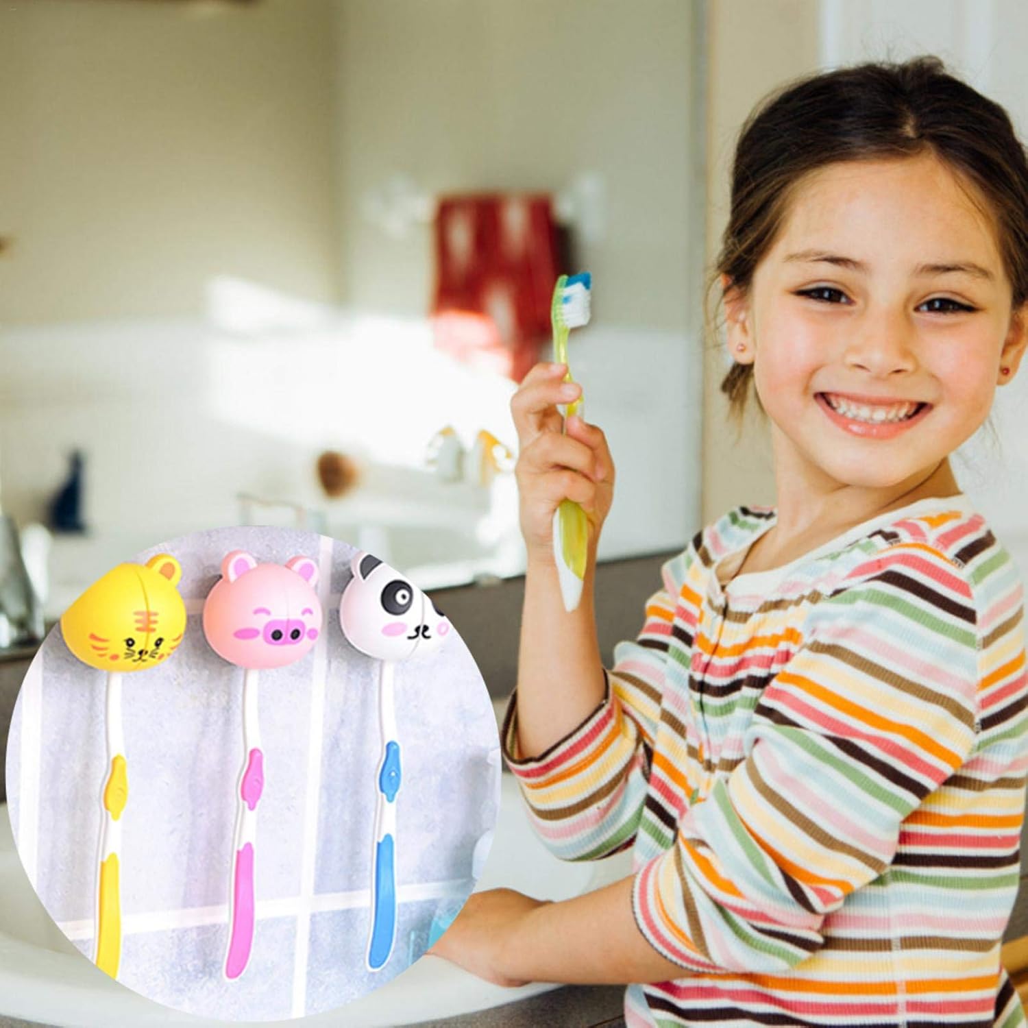 Product Features: 1. The product made of ABS materials is healthy, environmentally friendly, sturdy and durable. 2. The product will close automatically with a gentle press after you open the toothbrush rack and put the toothbrush in, therefore it's really easy to use. Product Parameters: 1. Material: plastic 2. Specifications (approx.): 6 * 6 * 4.5cm/ 2.36 * 2.36 * 1.77in List: Toothbrush holder (random style, without suction cup) *3/5
