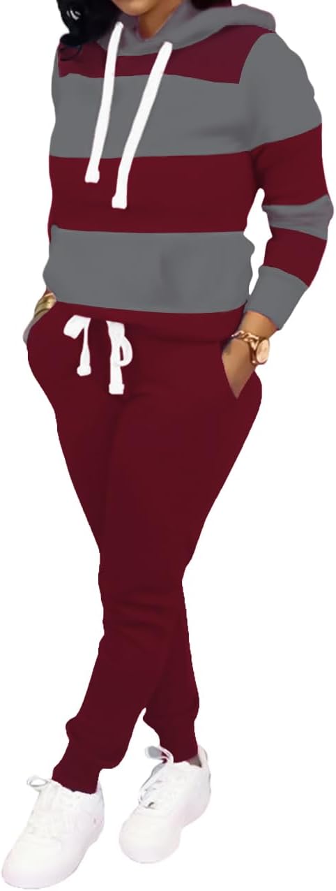 TOPONSKY Womens 2 Piece Tracksuit Long Sleeve Warm Up Outfit Patchwork Pants Set