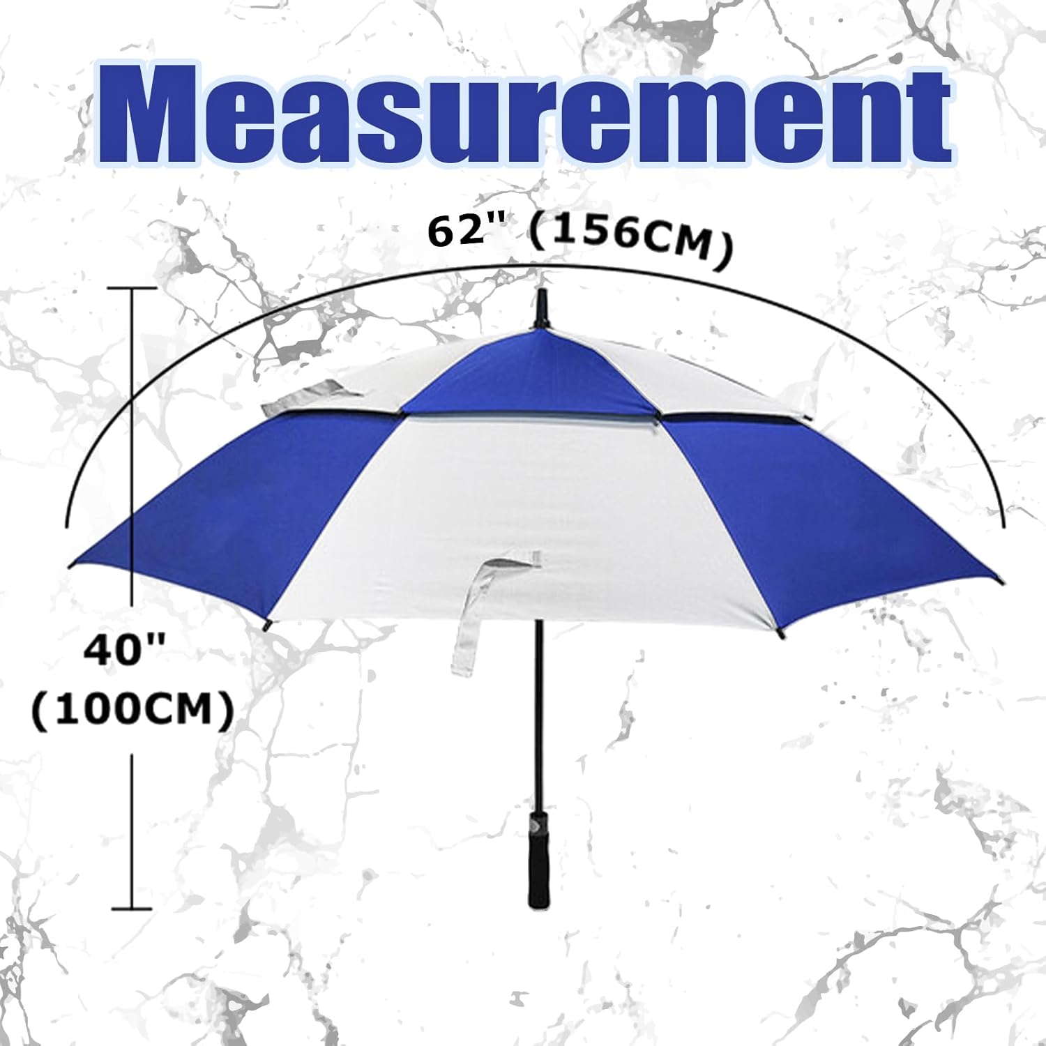 Custom golf umbrella with wind vented canopy, it is windproof and sun-resistant, you can add some design to make it more meaningful. Navy and white provides classic color contrast style.- Add name on it, make an exquisite gift for personal use.- Add logo or number on it, make a upscale brand product for .- Add text or slogan on it, make a well-marked gifts for professional activity, festival events or celebration.Features:62 inches (156cm) in arc52 inches (132cm) in opening diameter40 inches (100cm) in total lengthMaterial: Made of high-density pongee fabric, comfortable EVA grip, automatic open and 8 ribs fiberglass shaft. Package Quantity: Price is for 10 PCS custom golf umbrellas.Silver coating inside and it is large enough for 1-3 people, use this quality stick umbrella on the golf course to show confidence, relaxation and personality, it's also suitable for daily use.