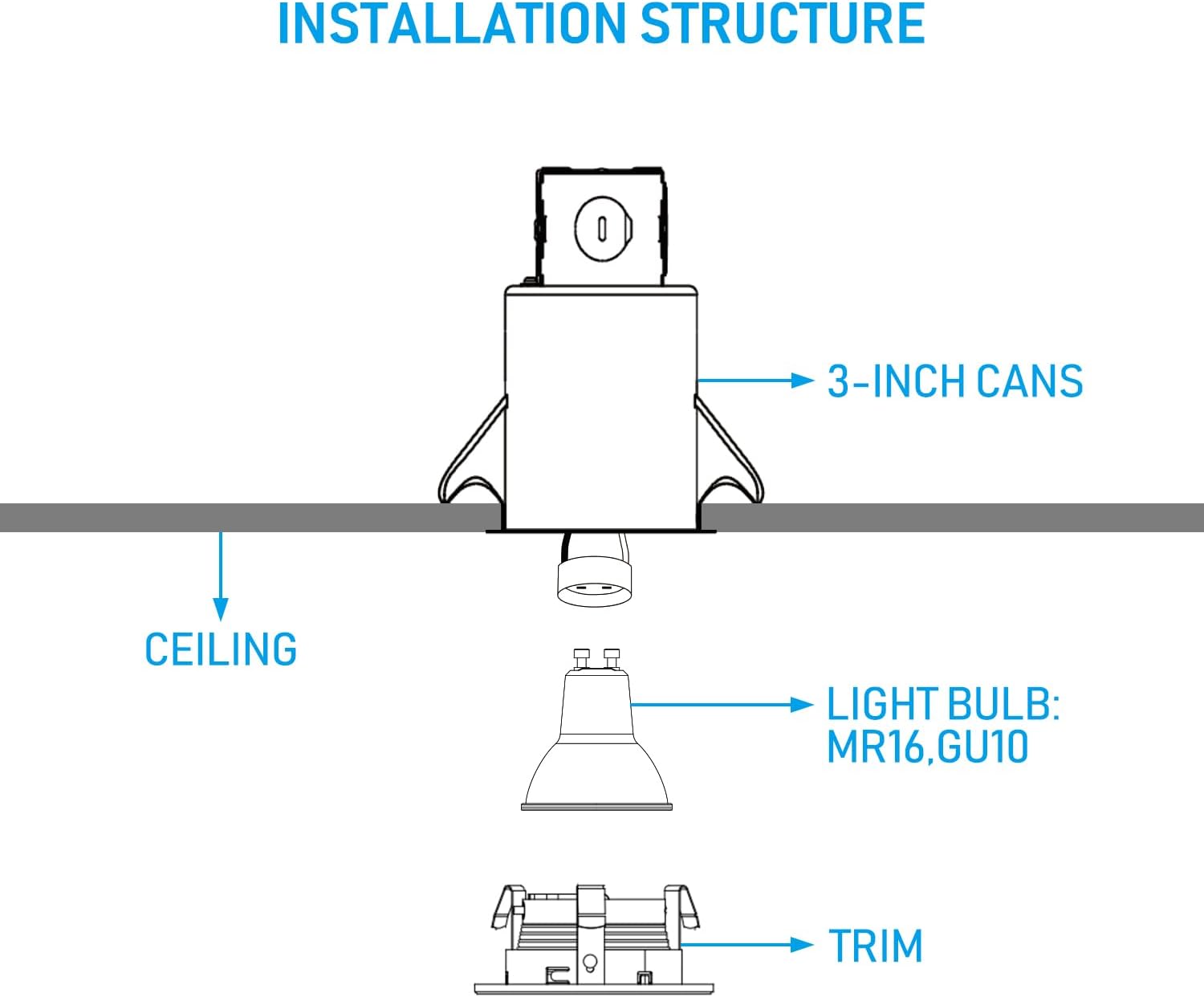 | Other Special Features of the Product | Adjustable angle design, Decoration for covering gaps, For 3-Inch cans and GU10, Full metal durable construction, Plug-n-play |