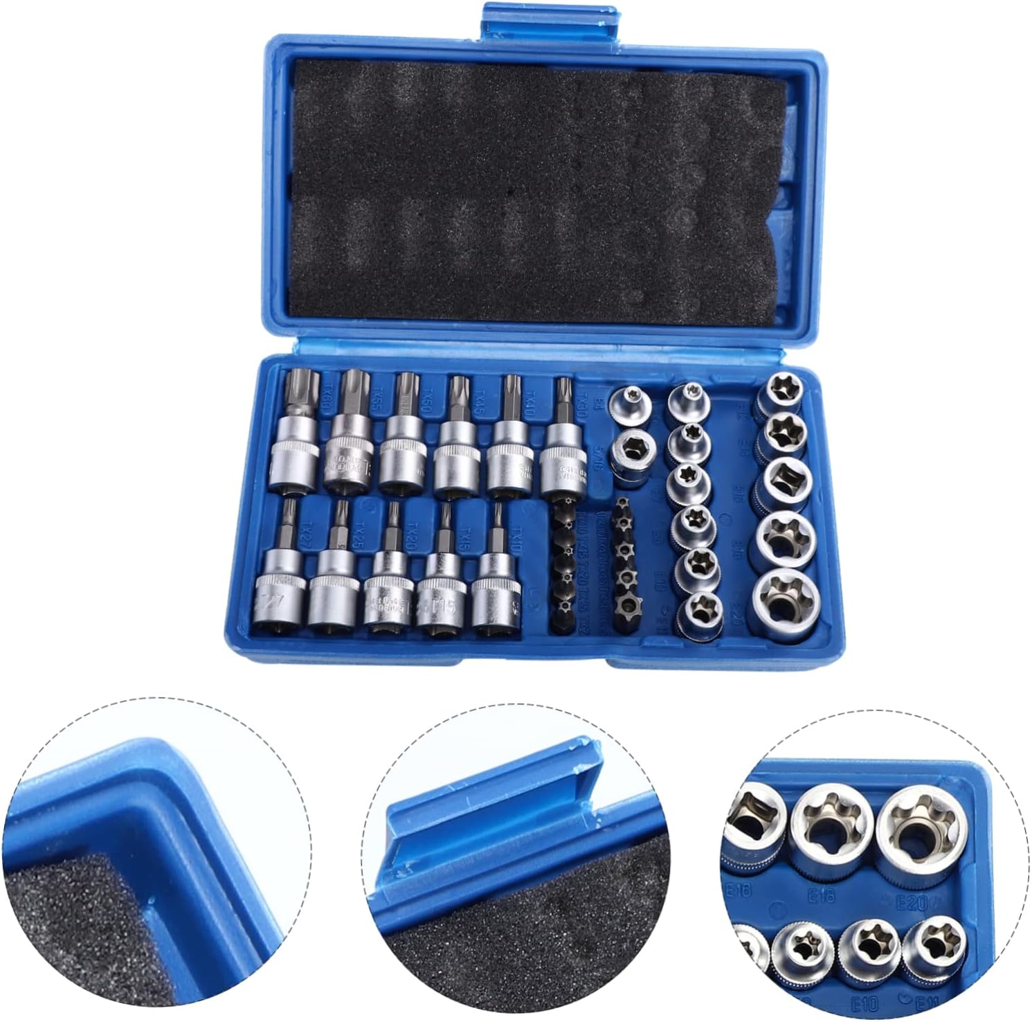 Package List 34 x sockets Features - Material: Steel Steel Torque Socket. - Color: Silver and blue Metal Torque Socket. - Size: 21.80X11.30X5.00cm/8.57X4.44X1.97 inch Torque Socket. Steel Socket - E- socket set is an essential tool for your car, motorcycle, bicycles, lawn equipment, electrical appliances, machinery, etc. Metal External Socket - Deep star design covers greater area between the driver and fastener to allow greater torque application with hand tools Metal Socket. - E socket is used in of automobile, whether you are a mechanic or DIY enthusiast, it is a necessity in the garage Steel Star Socket. - Made of material for a long time and use External Socket. - Come with a sturdy storage case for easy transportation, and quick organization Socket.Goods DescriptionSteel Star Socket The excellent workmanship of our product will bring you a good experience.E Socket Easy and convenient to use, it is very useful star socket.Metal E Socket Though it is simple , it's so when you use it.External Socket Adopting great quality material, which lets you use it for a very long time