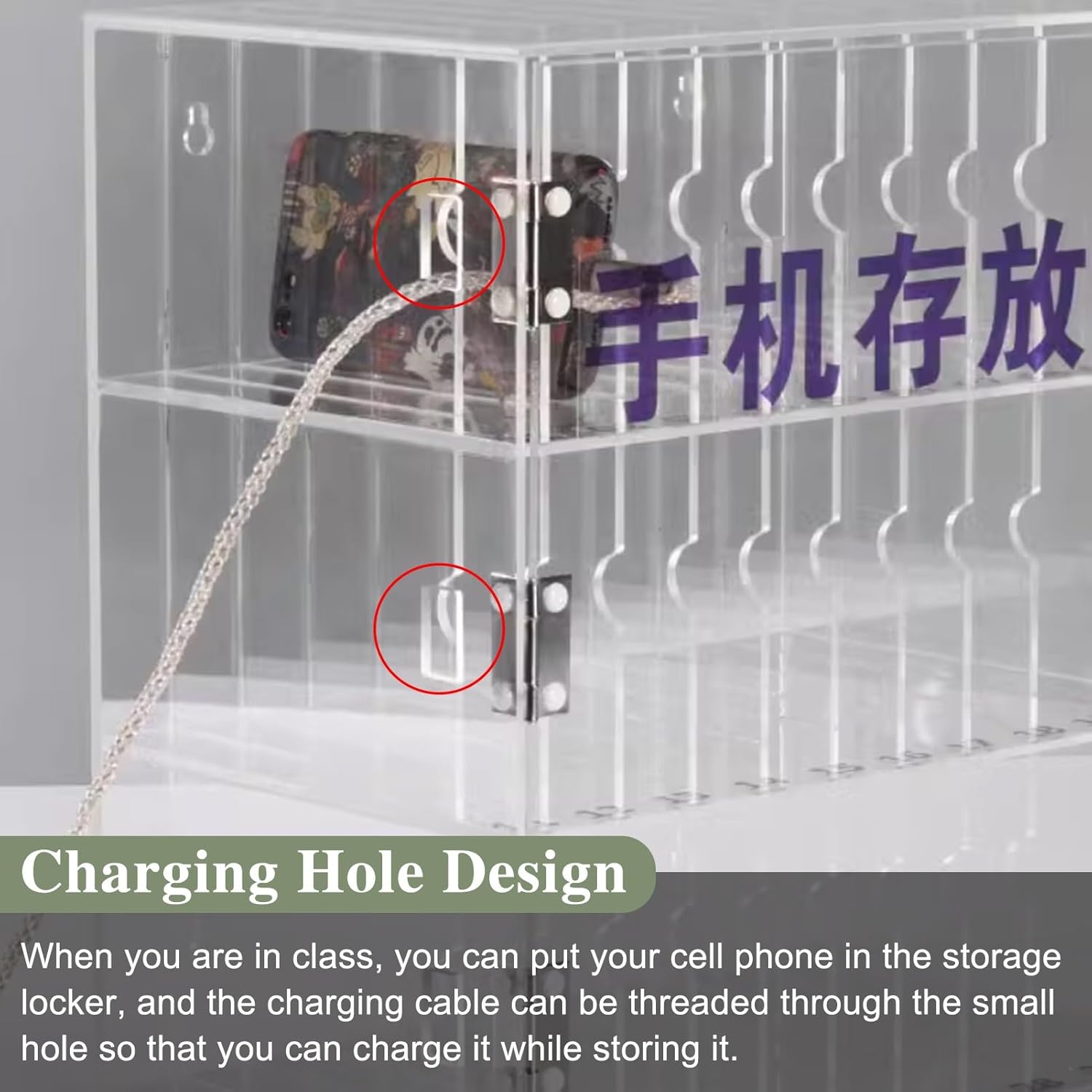 Are you looking for a practical solution to keep your phone safe while you focus on work or enjoy your time at the gym? Our Cell Phone Locker is designed to meet your storage needs without the hassle of installation. **Specifications:** - **Material:** Durable Acrylic - **Lock Material:** Stainless Steel - **Shape:** Rectangular - **Mounting Type:** Freestanding - **Installation:** No assembly required **Key Features:** - **Versatile Compatibility:** Our locker accommodates a variety of cell phone models, ensuring your device fits securely. - **Robust Design:** Crafted with thickened acrylic, it offers a sturdy and long-lasting storage solution for your phone. - **Convenient Access:** One key unlocks all compartments, making it easy to manage multiple phones in shared spaces. - **Low Maintenance:** Easy to clean and maintain, this locker is perfect for busy environments. - **User-Friendly:** The freestanding design means you can place it anywhere without the need for tools or setup. **Package Includes:** - 1 x Cell Phone Storage Cabinet - 1 x Key **Important Notes:** - Slight measurement variations may occur due to manual measurement; actual sizes may differ slightly. - Color may vary due to monitor settings; the actual product may differ from images. **Customer Support:** We are committed to providing quality service. For any inquiries, feel free to contact us; our customer support team is available 24/7. Invest in our Cell Phone Locker for a secure and reliable way to store your devices while you focus on what truly matters!