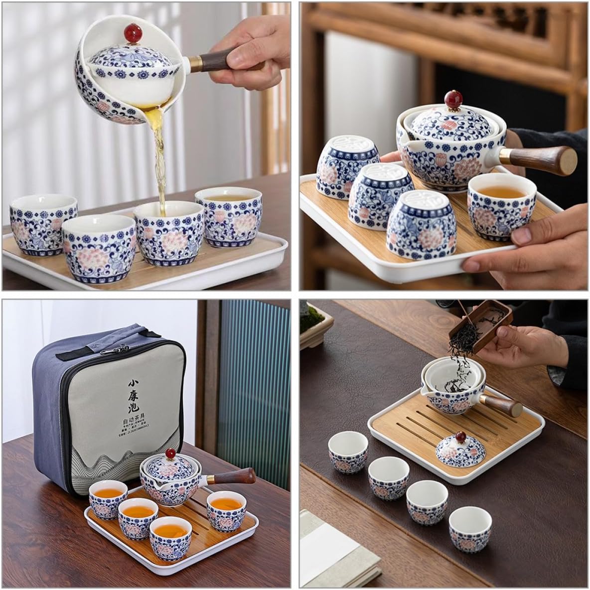 Package List 1 x Teapot 4 x Tea Cups 1 x Tea Tray 1 x Bag Characteristics -Color:Assorted Color -Size:17.50X8.80X8.80cm/6.88X3.46X3.46in (Tea Pot) -Product Info:Travel tea set -Size:19.30X19.30X2.00cm/7.58X7.58X0.79in (Tea Tray) -Size:23.50X23.50X10.50cm/9.24X9.24X4.13in (Bag) -Material:Ceramic, , wood, canvas, foams -Size:5.50X4.00X4.00cm/2.16X1.57X1.57in (Cup) - Create happy times with this portable tea set, portable tea set for family or travel use home teaware. - The handle could protect you from hot water spillage, and the hidden strainer in the teapot could make tea leaves stay inside the pot portable travel teacup. - This Tea Set is suitable for weddings, birthdays, Christmas, Thanksgiving and anniversaries as gifts for your lover travel teacups. - Reliable materials, heat-resistant, , practical, and for the . - The compact and lightweight design of this travel tea set makes it easy to take with you travel teaware kit.Goods Informationtravel teaware kit This Travel Tea Set uses materials.ceramic teacups The surface is smooth, elegant and generous, especially elegant.portable travel teacup Share it with your family because it is practical.travel tea serving kit The creative design will give you a wonderful experience and bring you a good mood.portable teacup Lightweight and convenient for travel