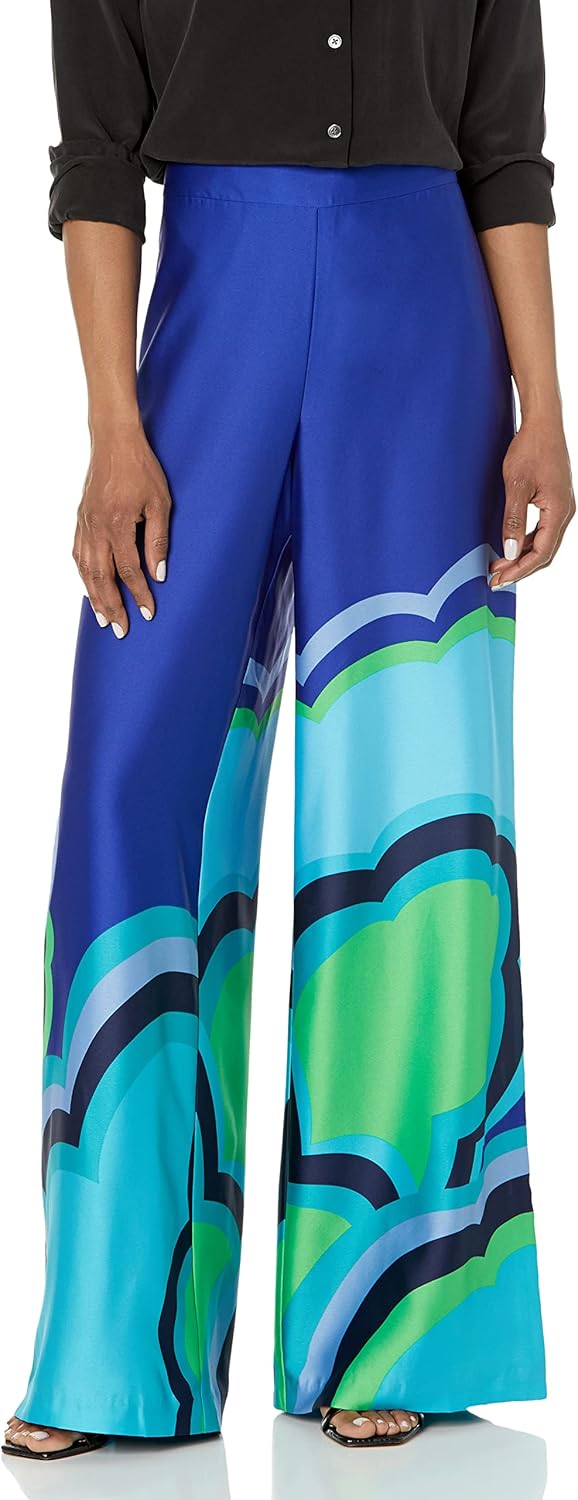 The Long Weekend 2 Pant is a clean front wide leg pant with a placed cloud print