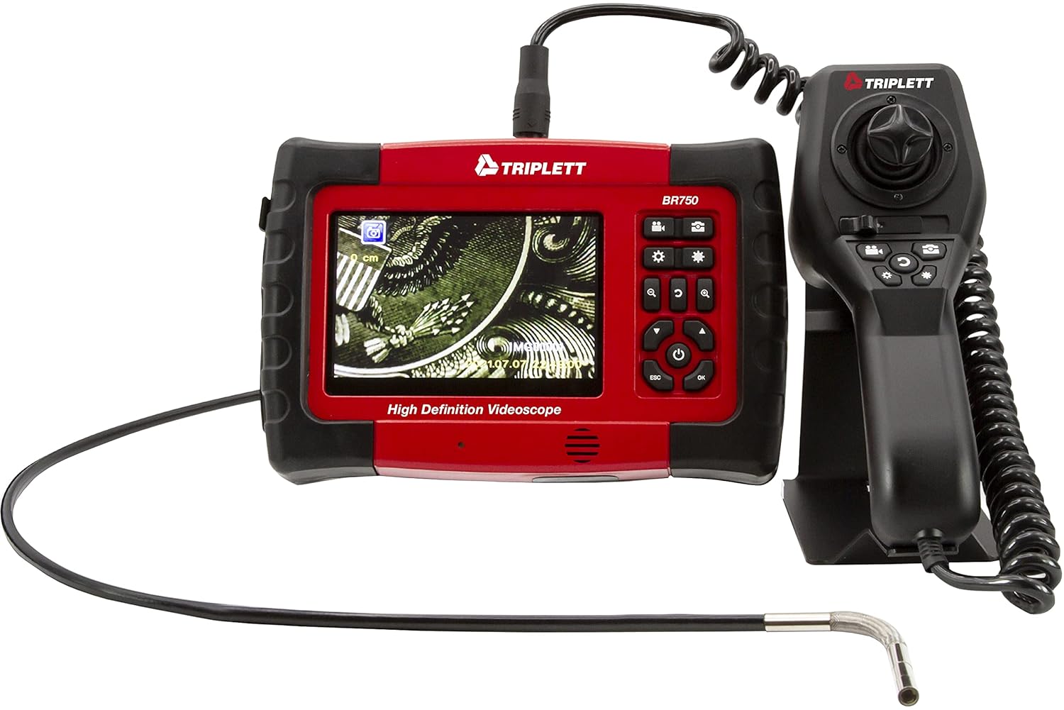 The Triplett BR300 High Definition Videoscope inspection camera allows you to see behind walls and down drains which can save time and money on any repair or installation. It has an 5.5mm waterproof (IP67) camera with 8 adjustable LEDs with 3 brightness levels and a built-in auxilliary light illuminates darkened work areas for inspection. It features a 5" Color LCD monitor with 1920 x 1080 resolution, 3X zoom, and 180° screen view rotation. It has a built-in clock/calendar and can record video (.AVI) and images (.JPG) with a freeze function during live viewing. You can view captured video/images on the display or transfer to your PC using the USB interface or removable microSD card (64GB max). The BR300 can store up to 4k images on the included 4GB microSD card and supports 8 languages (English, French, German, Italian, Russian, Japanese, and Chinese). It comes complete with Videoscope, 5.5mm camera probe with 5m cable, 5V Li-Po rechargeable battery, microSD card, USB cable, and camera accessories (magnet, hook, mirror).