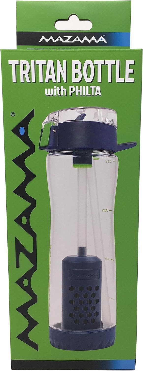 Stay hydrated and protected on your adventures with the Mazama Tritan Bottle, featuring a built-in PHILTA filter for clean water up to 150 gallons. This durable, 24-ounce bottle is crafted from shatter-resistant Tritan material, ensuring it withstands tough outdoor conditions. Its convenient flip-top lid and dust-free design make it perfect for travel, hiking, or biking. The bottle fits most standard cup holders and comes with a long straw for normal drinking when the filter is not in use. Easy to care for, simply hand wash after each use.