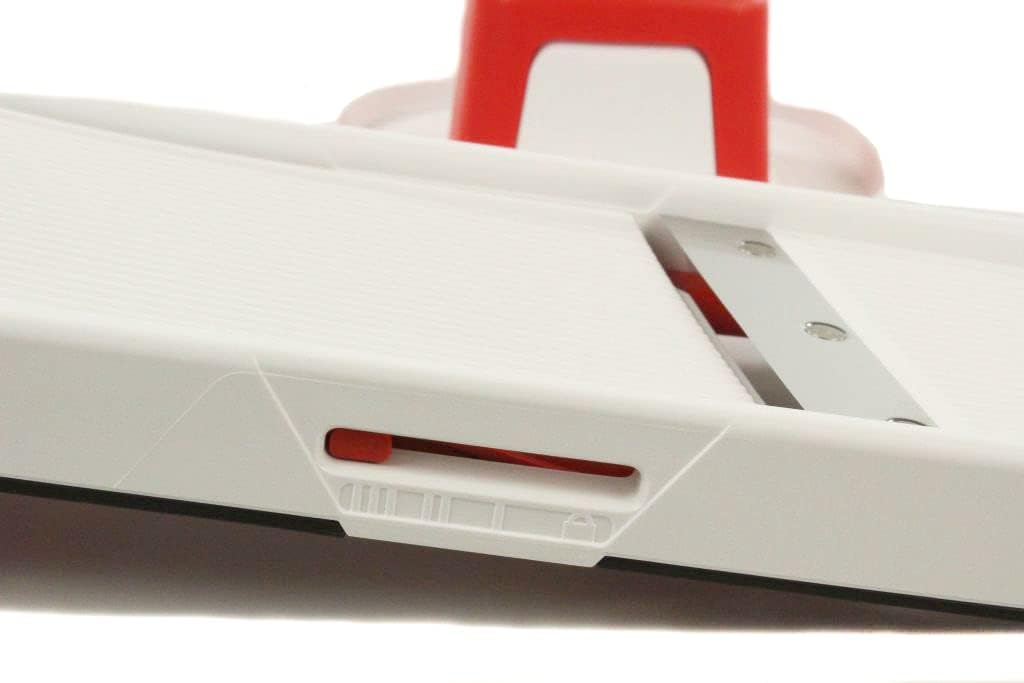 Original Tupperware product. Küchenstar Junior Mandolin White/Red Size: Width: 10.5 cm; Height: 4.5 cm. Adjustable blade to three thicknesses and Lockable Do not use without finger protection. Tupperware is a registered trademark, used here as this product is an original Tupperware product with proven quality.