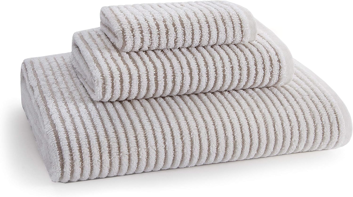 Beautiful ribbed stripe pattern Salisbury Towels are crafted from a blend of the finest 100% Combed Aegean Cotton. These towels are available in 4 colors, 600 GSM, Bath towel features a sewn in hanger loop, Made in Turkey. Other items that you can also purchase in this collection measures: Bath Towel: 28" x 54", Hand Towel: 18" x 28", Wash Towel: 13" x 13" This set includes 1 Bath Towel, 1 Hand Towel and 1 Wash Cloth.