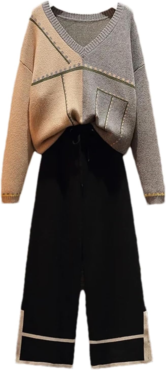 Waist:Mid WaistPant Style:Wide Leg PantsFront Style:FlatFit Type:LooseFabric Type:Knitted FabricClothing Patterns:LooseSeason:Autumn/WinterPlace Of Origin:China (Mainland)Pant Length(Cm):Ankle-Length PantsPattern Type:PatchworkClothing Length:RegularPant Closure Type:Elastic WaistSleeve Style:RegularCollar:V-NeckDecoration:Pockets,Spliced,PanelledClosure Type:PulloverStyle:Office LadySleeve Length(Cm):FullGender:WomenOrigin:Mainland ChinaElasticity:High Strecth Women's 2 Piece Outfits Sweater Set Wide Leg Pants High Neck Sweatsuit Loungewear Women 2 Piece Sweater Sets High Neck Knitted Pullover Wide Leg Casual Sweatsuit Women's 3 Piece Sweatsuit Outfits Long Sleeve High Neck Knit Pullover Sweater Top High Waist Wide Legs Pants Lounge Set Women Knitted Outfits High Neck Sweater Wide Leg Pant Set 2 Pieces Sweatsuit Oversized Pullover Sweaters for Women Fall Winter Lace V Neck Hollow Long Sleeve Side Split Casual Striped 2 Piece Outfits for Women Crewneck Knit Pullover Sweater and Short Set