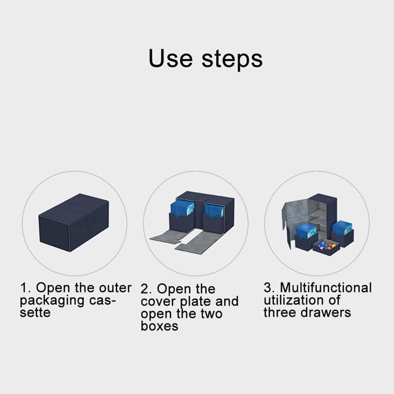 Holds up to 200 double-sleeved cards or 240+ single-sleeved cards, standard size.4 magnets for a perfect and very strong closure.The removable card and dice trays give you independent access to cards and accessories.innovative material with anti-slip texture with high-class microfiber inner material.The extra durable and rigid box protects your cards during transport and keeps your collection safe during storage.Material:PU leathercolour:Blue / BlackPackage includes:1 x card boxOnly the above package content, other products are not included.Note: Light shooting and different displays may cause the color of the item in the picture a little different from the real thing. The measurement allowed error is +/- 1-3cm.Item specifics:Material: PlasticOrigin: Mainland ChinaRecommend age: 12+y