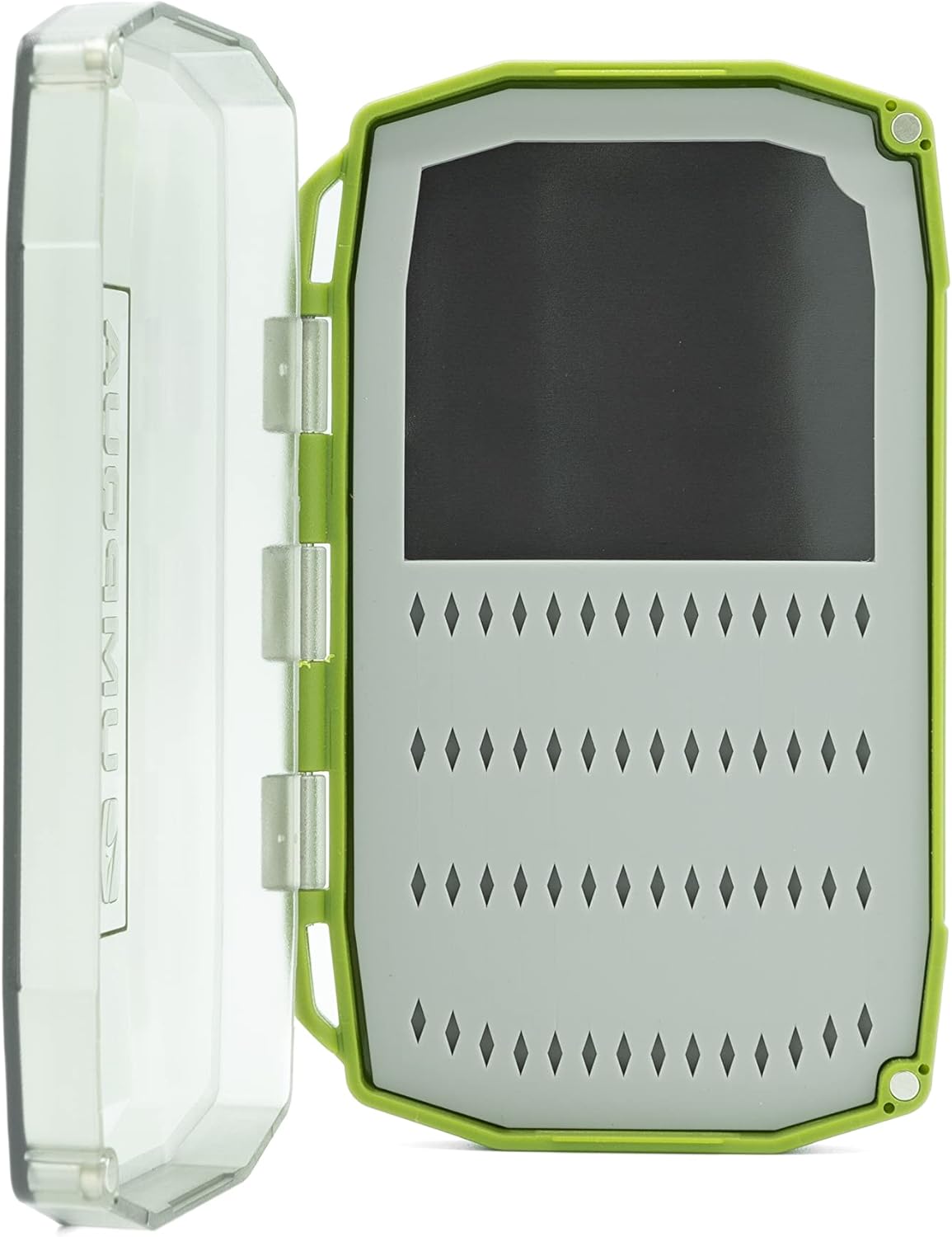 UMPQUA UPG SILICONE DAYTRIPPER LIME FLY BOX: A versatile mix of silicone and magnetic fly storage in a thin box fit for a range of dries, nymphs, and even small streamers. The Daytripper Fly Box holds a day's worth of flies for any scenario the river can throw at you. The unique mix of fly storage options makes this a great box for everyday use. Designed for the adventure seeker who needs to keep their must-have flies at the ready or in their pocket, The Daytripper Mini Fly Box is a fisherman's best friend. HYBRID INSERTS - MOST DIVERSE STORAGE: - Ideal for a wide variety of flies sz 8-26; - Unique storage areas for different flies; - Magnetic Fly Dock - for small flies and drying or staging flies; - Fly Trap – for offset head to tail storage of flies sz 8-16; - Micro Slit - for compact organization of small flies sz 16-20. SUPREME GRIP SILICONE: - Flies stay where you put them; - Zero memory self-healing silicone; - Long lasting durability; - Most secure hold. BOX SHELL - LIGHTWEIGHT: - Lightweight/Low Profile Slim Design; - Magnetic Quick Access Open/Close; - Strong Impact Resistant Shell .