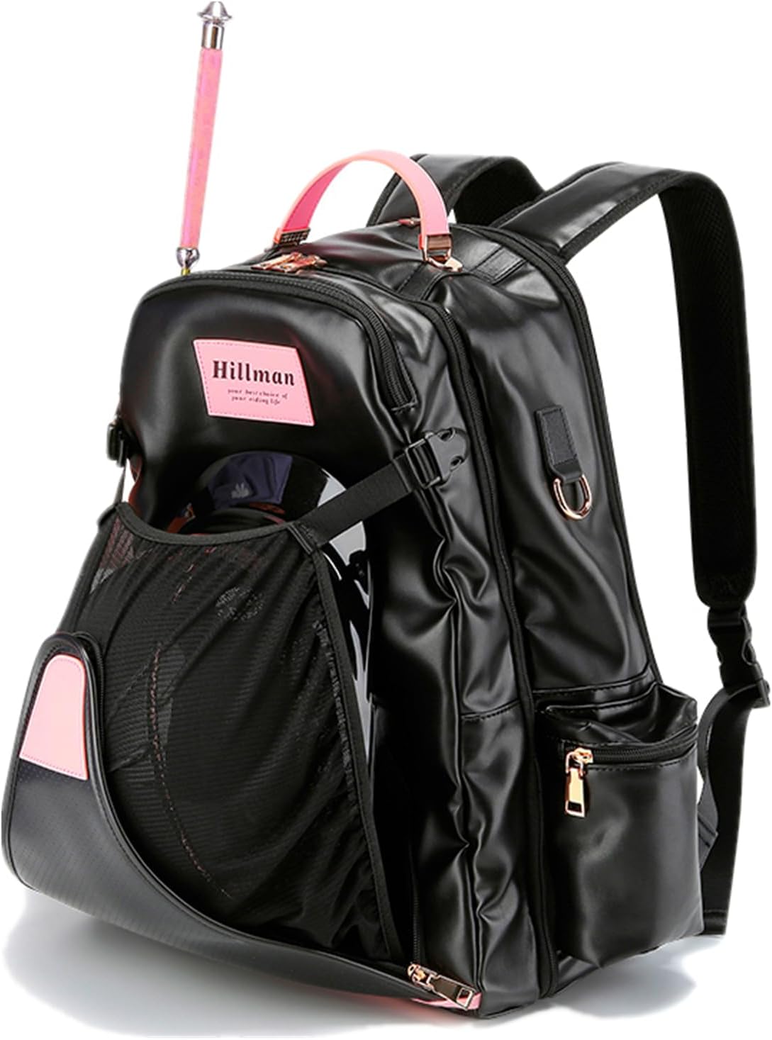 UNISTRENGH Large Capacity Equestrian Backpack Riding Equipment Knight Bag for Riding Boots ,Hat and Other Equestrian AccessoriesSpecification:Durable waterproof pu material, high-quality zippered closure & extra-durable plastic hardware for easy using.Multiple Compartments and large capacity for your daily riding sports, even convenient for other outdoor sports.Adjustable Helmet pocket with soft and stretch fabric.Main Pocket: open flat to 180° for easy packing (like suitcase).Easy grip handle.Ergonomically Designed: reduce shoulder pressure and make the body easierDimensions:Full size: 15.75''L x 11.81''W x 16.93''D (40x30x43cm)Weight: Approx. 1.54 lbs / 700gNote: Tolerance: manual measurement, within 0.39"-0.79" deviation.Backpack Feature:Large capacityThe Backpack can store large items for your horse riding sports.Open flat to 180° for easy packingIt can be opened flat like a suitcase, It is easy to pack beings.Separete compartmentsThere are two main separate compartments with zipper cover.Outside pocketsThere are multiple exterior pockets, for helmet holder, horse whip, gloves, water bottle, keys, wallet, glasses, etc.Package Included:1 x Equestrian BackapckTips: UNISTRENGH is highly committed to satisfaction of every consumer. If you have any question with our product, please get in touch with us anytime, we will provide you with a 100% satisfaction solution