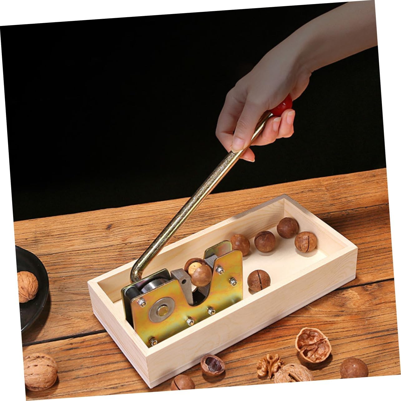 Package List 1 x mechanical nutcracker Features -Material: Wood & Stainless Steel pink -Size: Approx. 25.50X12.00X4.50cm / 10.02X4.72X1 Green Walnut Opening Tool. -Color: Log Color almond - Open walnuts and nuts easily and quickly, which is convenient and practical home tools. - Our walnut opening tool is to wear, , deformation and Walnut Clamp. - and fine workmanship its durability and practicality machine. - With ergonomic handle, it is easy to use and labor-saving nut cracker with hat. - Applicable to a variety of nuts, such as walnut, hazelnuts, almonds etc Fresh Walnut Cutter.Goods Informationwalnut kitchen accessories for you, its is a good helper in your kitchen.hard shell nut opener The mechanical nutcracker is made of for and practical use.household gadgets This is a great gadget for you to crack open your favorite nuts, pecans, almonds, nuts, hazelnuts