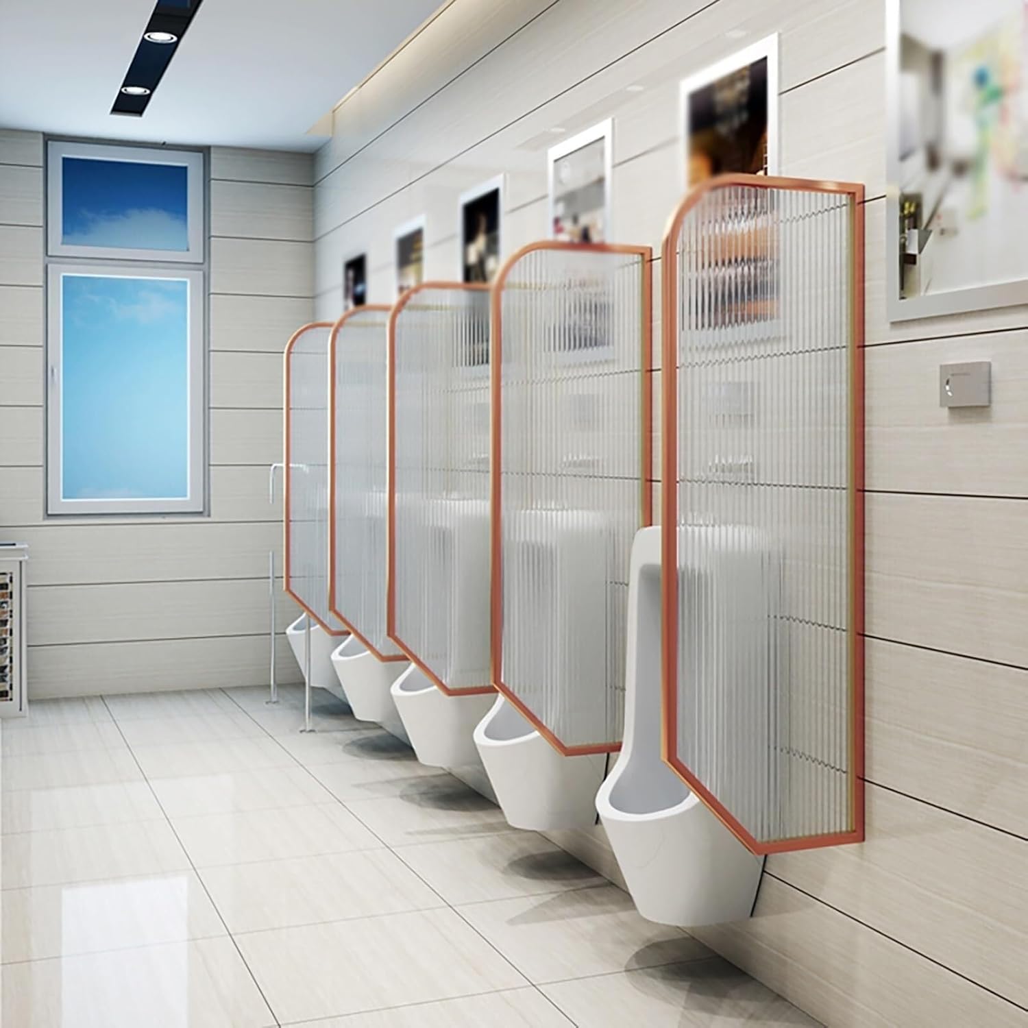 Creative partitions for aesthetic separation of space. It is both a toilet partition and a fashionable artwork. Partition the space and divide the area to make the home feel more designed.Premium tempered glass features a translucent design that protects privacy while expanding your viewing experience.Stainless steel frame, the frame is strong and stable, not easy to deform, well-made, and sustainable for long-term use.Fix it on the wall with high-quality mounting stainless steel corner brackets. After being installed on the wall, the load bearing is stable without shaking or deformation.Name: urinal partition screenMaterial: glass+metalSurface treatment: waterproof treatmentSize: 120*40cm/47.5.5*16inColor: black, gold, white, rose goldInstallation method: Wall-mountedScope of application: Very suitable for public toilets, bars, hotels, shopping malls, studios, garages, restaurants and other placesSpecifications: partition*1, partition*2, partition*3, partition*4Accessories: corner code X4/piece, screws, expansion tube