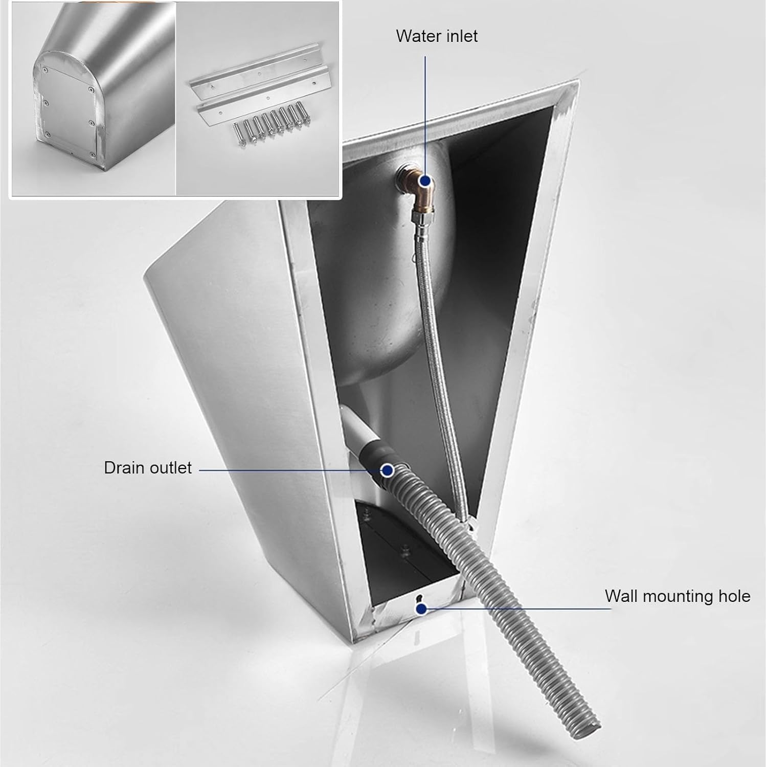 HOLGVE Wall-mounted urinals feature an automatic sensor design. It will automatically flush with water after peeing, no need to touchOur men's toilet urinals adopt a scientific anti-splash deepening design, which can effectively prevent splashing waterThe surface combines brushing technology and anti-fingerprint coating, which is scratch-resistant and can be used with confidenceIt is very suitable for public spaces with large crowds, such as schools, hospitals, railway stations and other renovation projects.Name: male sanitary ware public toilet urinal, wall-mounted men's flushing urinal, steel urinal, stainless steel urinal, household/commercial bathroom urinal, flushing urinalColor: Black,Gold ,Silver-Material: 304 Stainless Steel-Surface Process: Piece Brushed-Drainage Method: Wall Drainage-Water Inlet Method: Hidden Water Inlet-Installation Method: Hanging- Size: 59x36x25cm/23.2x14.1x9.8innPrecautions:1. Due to different measurement methods, there may be 2-3 cm error, please refer to the actual item.2.Due to light and monitor problems, it is normal for the product to have colour differences.