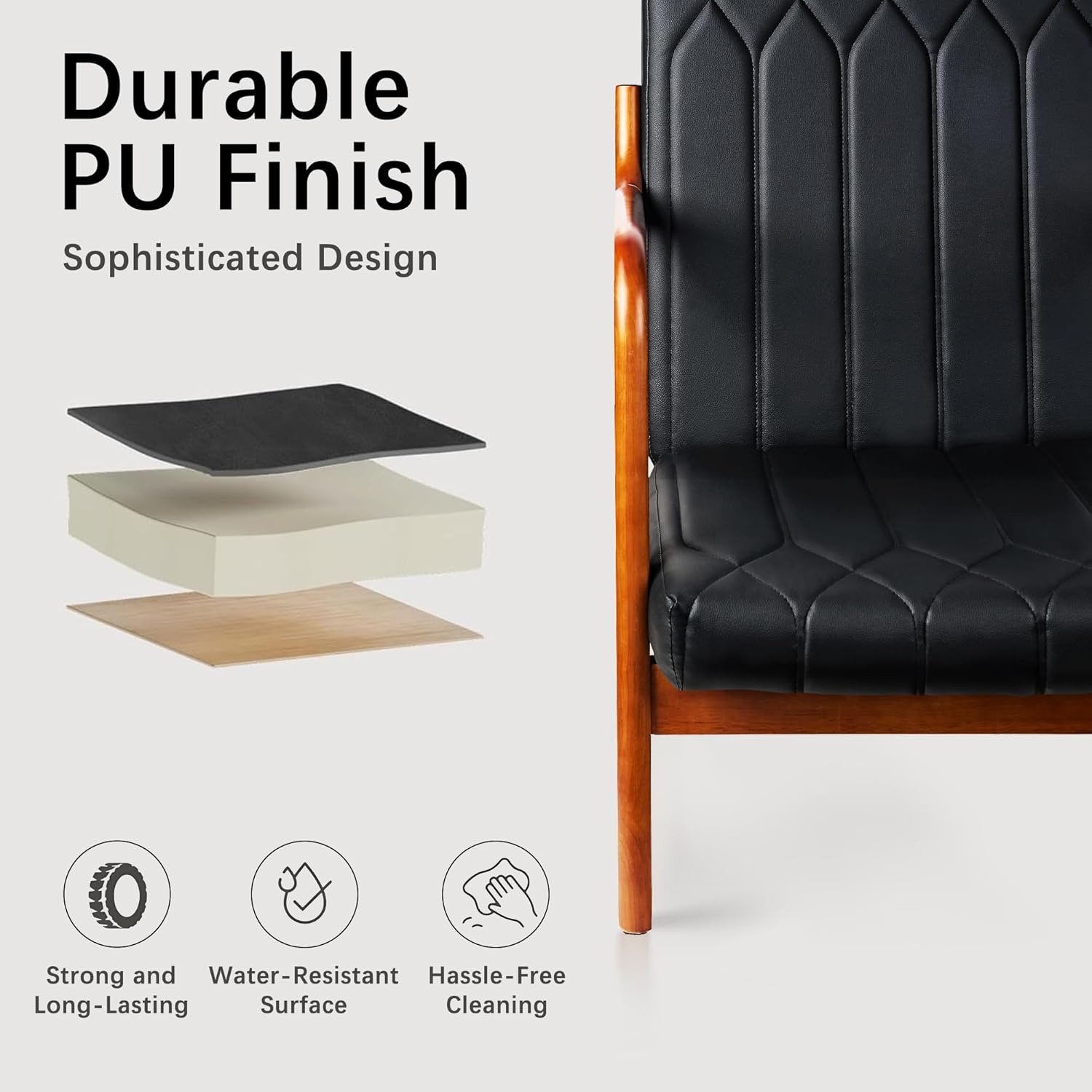 | Model Name | VECELO Mid-Century Modern Accent Chair with Faux Leather Cushion & Solid Wood Frame, |