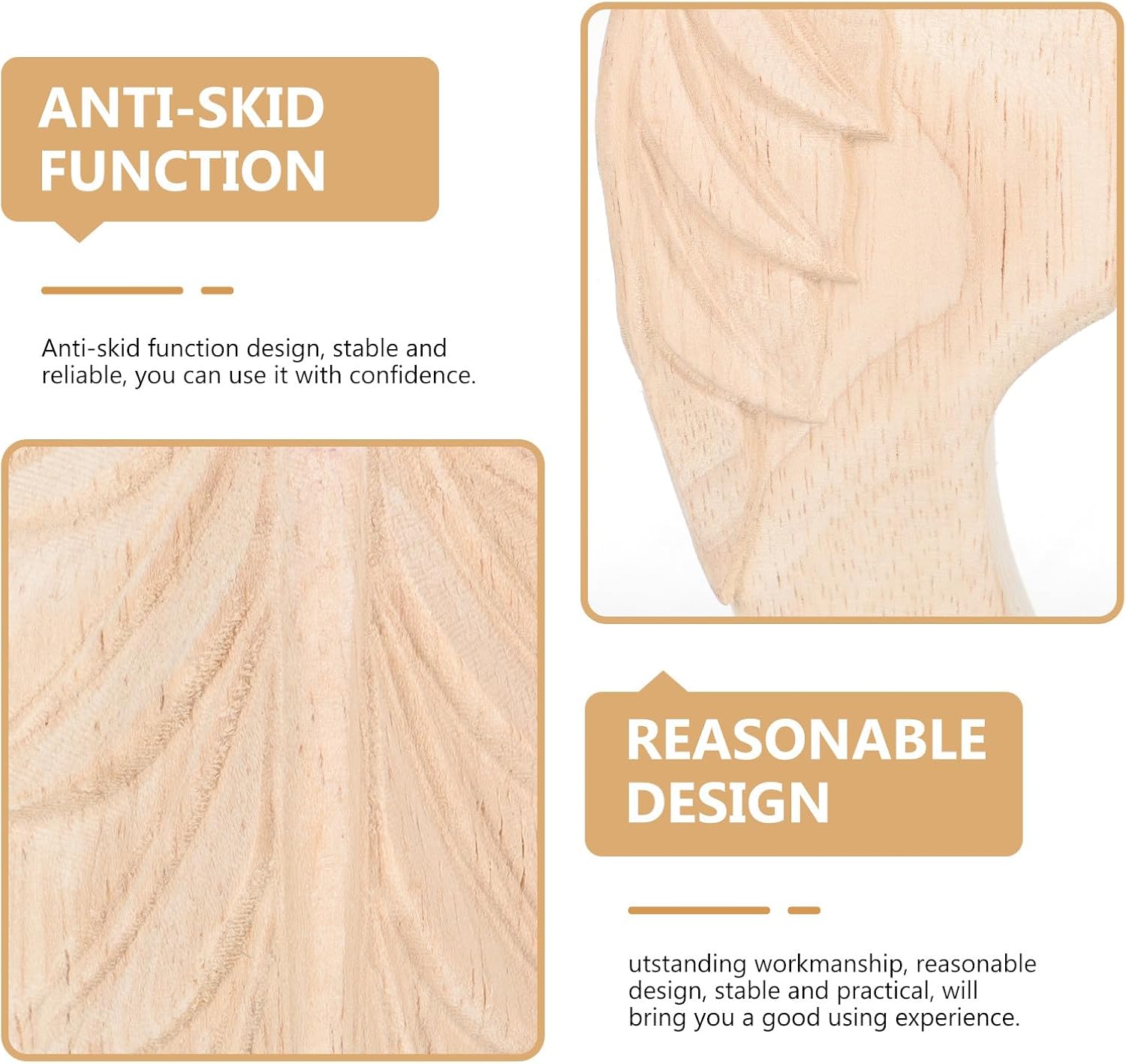 Package List 4 x furniture legs Features -Material:Wood -Size:15.00X6.00X6.00cm/5.89X2.36X2.36in -Product Info:Wooden carved cabinet feet -Color:Khaki - Wood craving design, elegant and grand, perfect addition to your home furniture wood legs for furniture. - Easy to operate and to install with the simple structure, to provide you with a more relaxed way of modification chair leg. - Can be installed on the furniture stably and with flat bottom, so the furniture will not shake wood furniture leg. - Suitable for sofa, cabinet, couch, coffee table, TV cabinet, office furniture, and other furniture cabinet legs. - Adoption of simple and convenient design, this product also can be used for a long time wood sofa legs.Goods Descriptionwood furniture legs The furniture leg is convenient and practical, with excellent texture, and without being easily damaged.wood table leg This furniture leg is a very practical and reliable for your needs.legs for tables The craftsmanship can serve you well without breaking easily