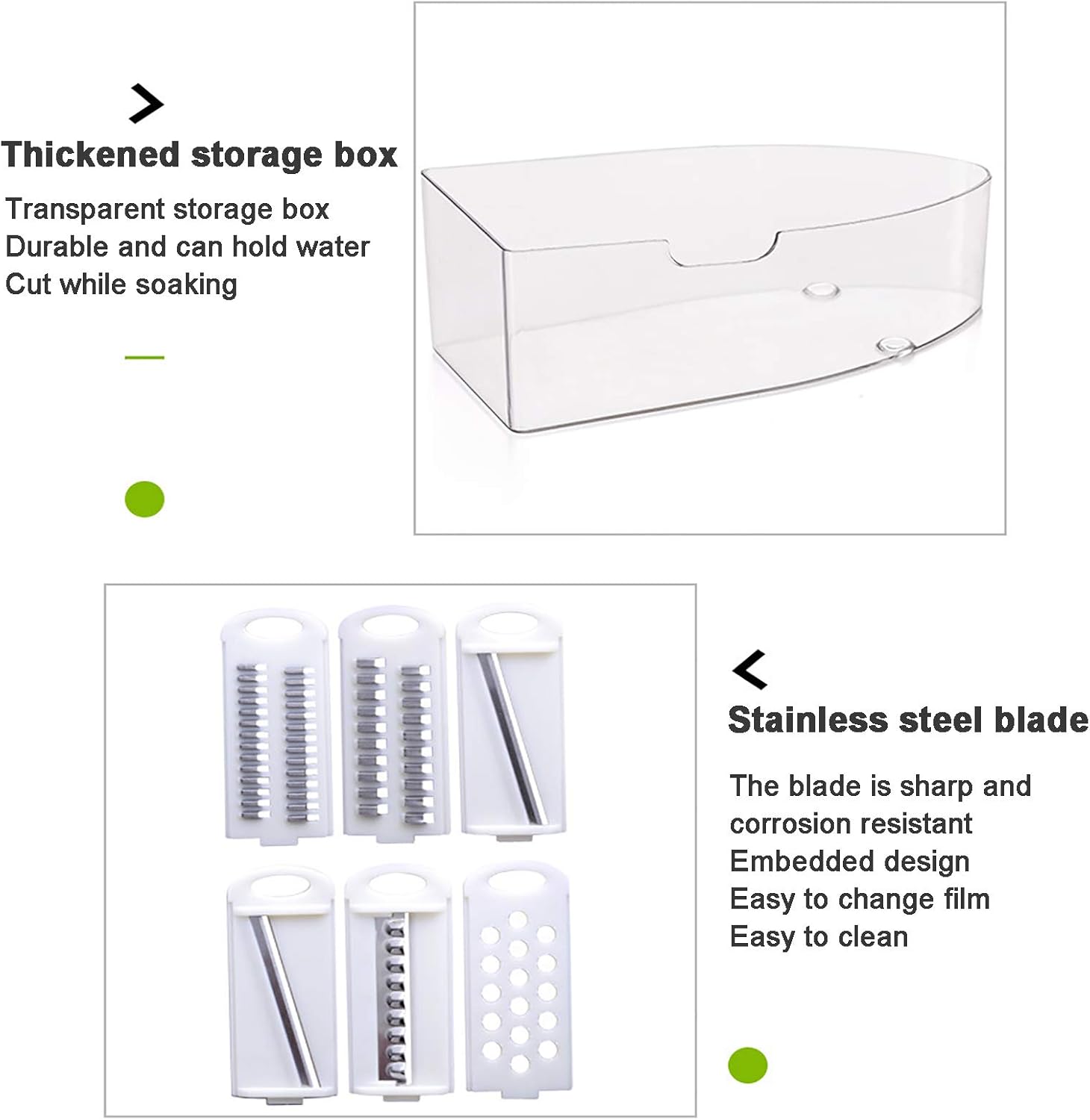 Convenient cooking. Take advantage of life with the use of vegetable slicer. The food cutter is your good helper in the kitchen. Multiple blades. 6 blades to choose from, make the fruit and vegetables new tricks. Let your taste buds move and dance. High quality and safety. From product material to finished product quality, BPA free, food grade hardened ABS plastic and stainless steel. Make sure you can use our product safely. Compact and large capacity. Compact appearance for space-saving food storage. Easy to clean. After cutting vegetables and fruits, it is recommended to clean the knives with tap water. Please be careful when cleaning the blades. Note: ! - When chopping food, safely use a hand guard for attachment. ! - For hard skin, vegetables and fruits, peel it off first. ! - Do not immerse in water for a long time, please cut it into clean food. Package includes: 1 x Vegetable Cutter 6 x Blades 1 x Grater 1 x Hand Guard If you have any questions about this chopper, please contact us.