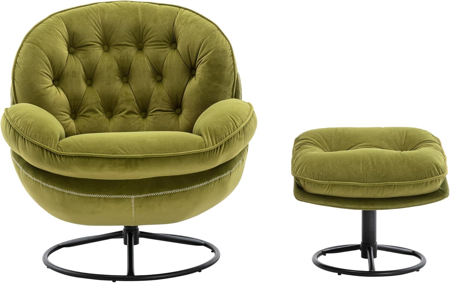 Description:This luxurious velvet Ottoman, Ottoman set features a modern medieval style and modular stitching design. The main chair measures 31.73 inches wide, 33.50 inches deep and 33.78 inches high. It has no armrests and can hold up to 250 pounds, making it spacious and sturdy. The matching footstool measures 19.29 inches wide, 15.94 inches deep and 16.73 inches high, perfectly matching the main chair. Both are covered in a high-quality soft velvet fabric, and the metal frame and black metal legs enhance the overall stability. Even on uneven ground, it can remain stable and does not shake. The combination of backrest sofa chair and foot mat enhances the comfort of leisure moments, whether watching a movie or enjoying a game, providing additional support and comfort. This set of furniture can be easily integrated into any interior environment, adding a touch of luxury to your living space.Product Information:Upholstery Material: VelvetProduct Dimensions: 31.73"L x 33.5"W x 33.78"HProduct Weight: 44 PoundsNumbers of Package: 1Package Dimensions: 31.98"L x 25.09"W x 22.02"HPackage Weight: 46.91 PoundsWeight Capacity: 250 PoundsFrame Material: MetalArms Included: NoOttoman Included: YesLeg Color: BlackSwivel: YesSeat Construction: MDFToss Pillows Included: NoProduct Care: Spot wipes clean with a soft,dry clothSupplier Intended and Approved Use: Residential UseLegs Material: MetalLevel of Assembly: Partial AssemblyAdult Assembly Required: YesReminder:1. Manual measurement has been used, there may be some reasonable error.2. Product pictures are for reference only. Real product's color may be a little different from the image due to the lighting or monitor's display.3. Due to the large size o