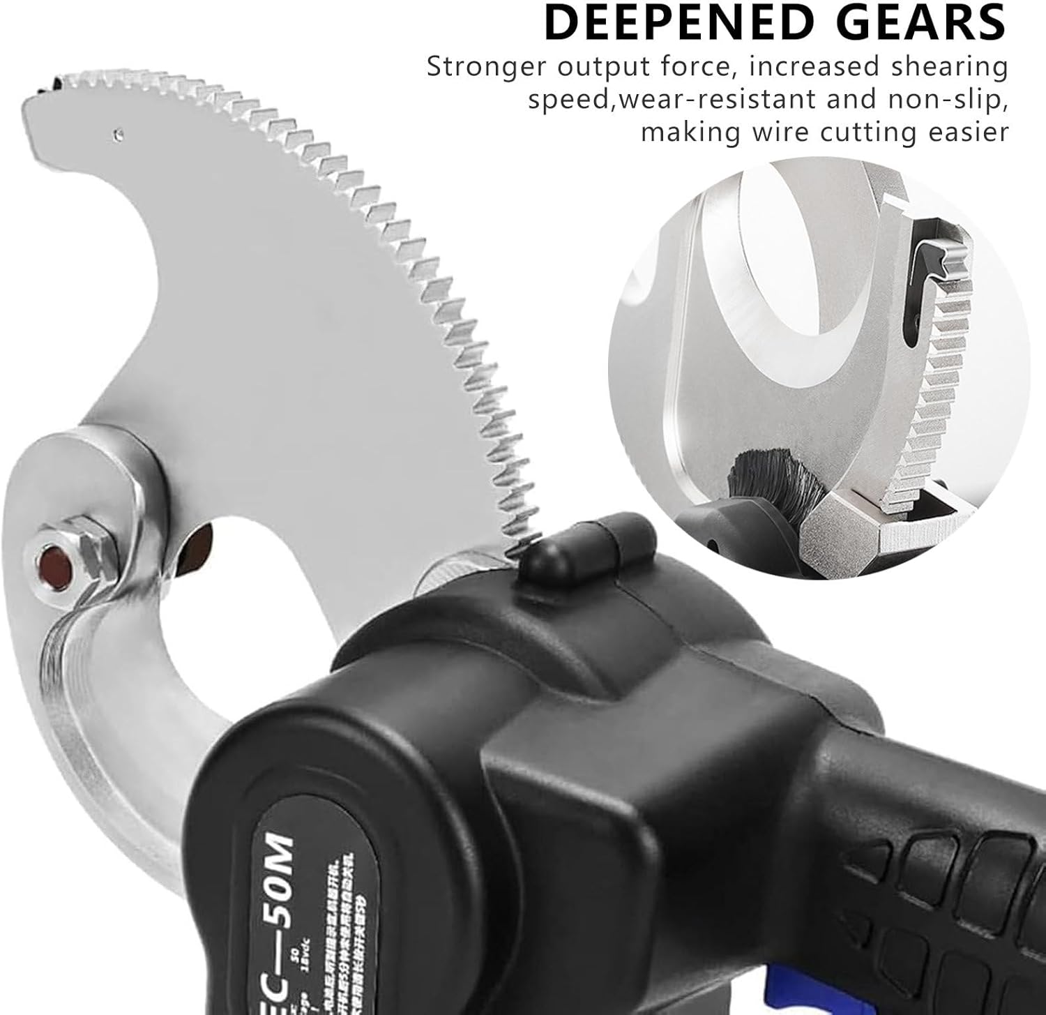 Portable ratchet cable cutter for cutting various copper and aluminum cables;With a maximum cutting size of Φ54/65/75/85/95 mm, this tool is for in power, steel, mining, railways, and more;The electric cable cutter features a motor start button for a safer and more stable cutting process;The gear deepening design guarantee increased shearing speed;The rechargeable design for cordless cutting work;Plus, the self-cleaning design helps maintain the cutting blade for extended useCUTTING SCOPE: ●54 mm: ≤Φ54 mm aluminum wire, 3x120 mm² copper wire, 560 mm² steel core aluminum stranded wire; ●65 mm: ≤Φ65 mm copper aluminum wire, ≤Φ60 mm armored cable, 1440 mm² steel core aluminum stranded wire, 120 mm² steel stranded wire; ●75 mm: ≤Φ75 mm copper aluminum wire, ≤Φ70 mm armored cable; ●85 mm: ≤Φ85 mm copper aluminum wire, ≤Φ80 mm armored cable; ●95 mm: ≤Ф95 mm copper aluminum wire, armored cable (Note: 75 mm, 85 mm cannot cut steel stranded wire and rigid cable)●PRODUCT PARAMETERS●Name: Electric ratchet cable cutterCharging time: 2 hoursDiameter: 54/65/75/85/95 mmWeight: 8 kg/17.6 lbPacking size: 49 x 39 x 17 cm/19.3 x 15.4 x 6.7"●PACKAGE LIST●1 x Electric Ratchet Cable Cutter2 x Supply1 x Charger1 x Suitcase●NOTE●1. Due to lighting reasons, there may be color differences between the product pictures and the actual product;Please refer to the actual items received2. There may be 1-3 cm error due to manual measurement