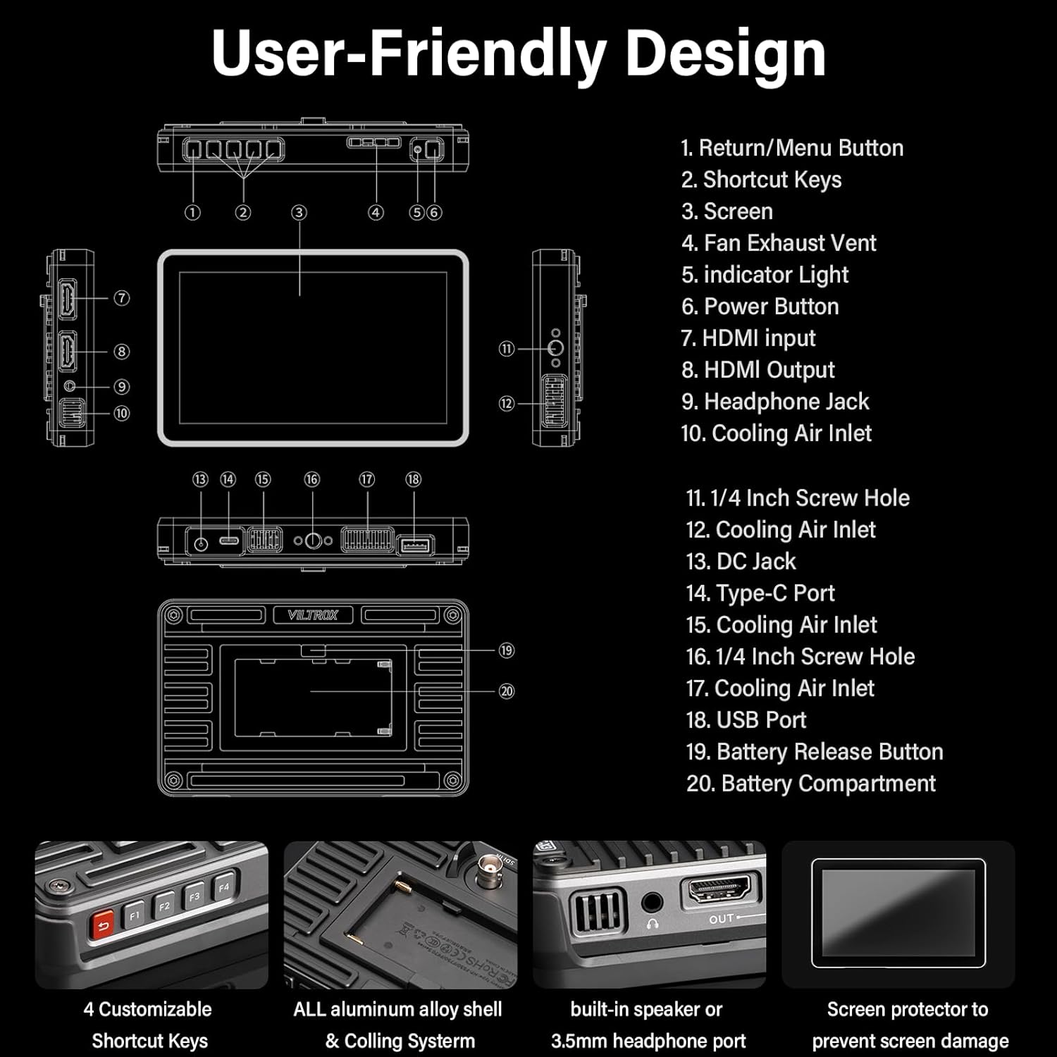 | BuiltIn Media | HDMI Type A to Mini-HDMI Cable, Shoe Mount Adapter, Sun Hood, Viltrox DC-X2 6" Touchscreen HD Monitor |
