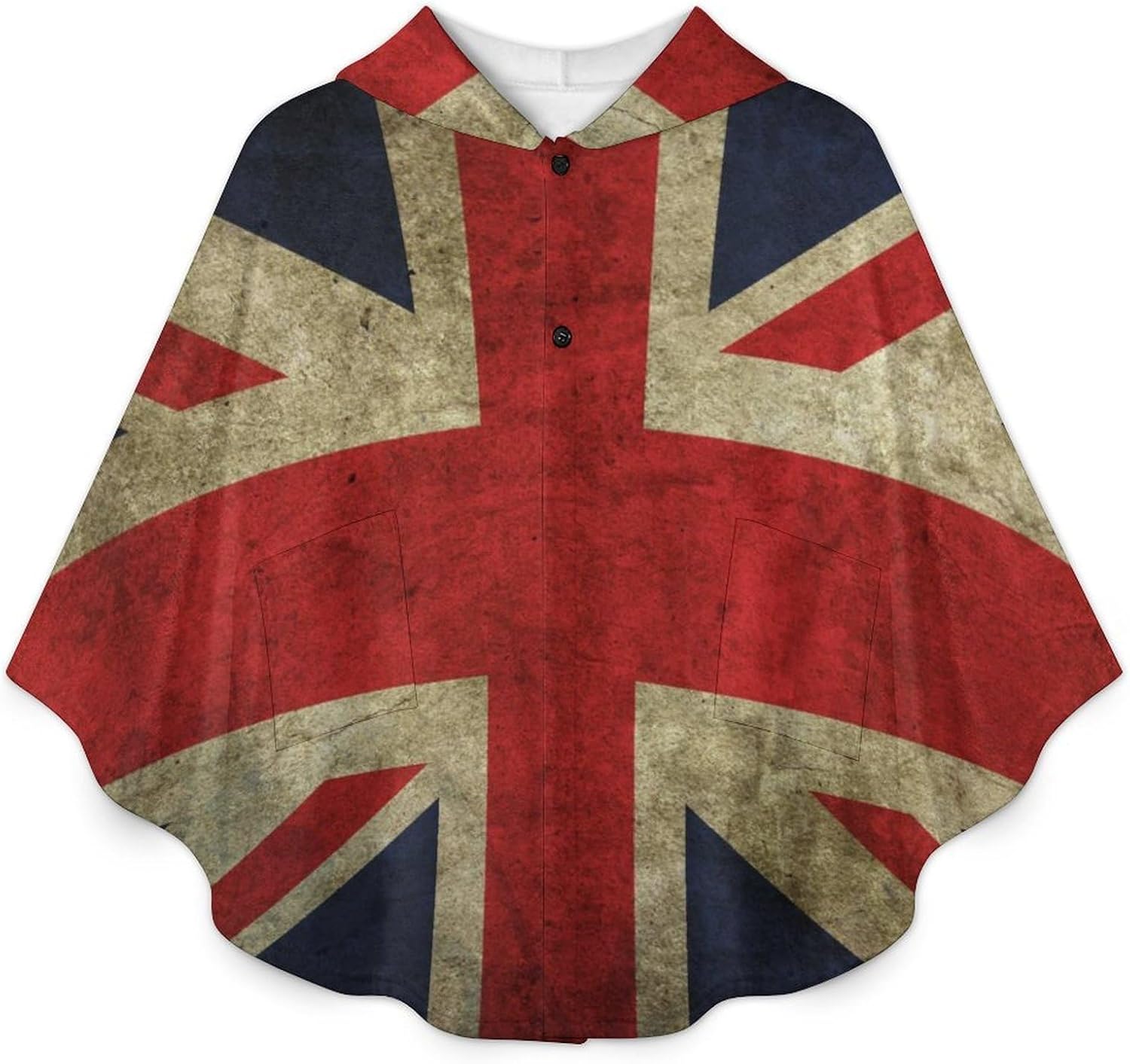 The wearable blanket is made of soft and comfortable flannel fabric, which makes you feel warm in spring, autumn and winter. It has a cape-like shape, a button closure for easy wearing and taking off, and two pockets.