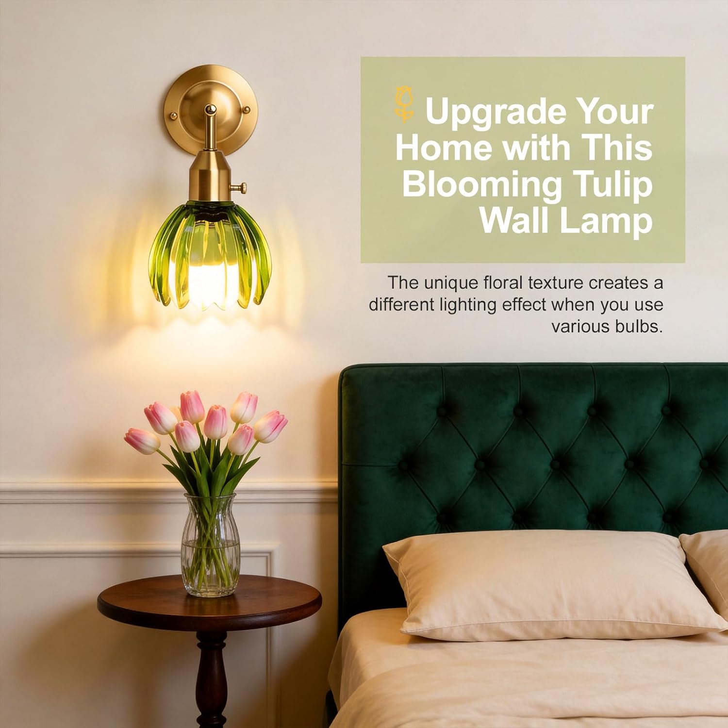 Vintage Wall Sconces with Cute Tulip Glass Lampshade