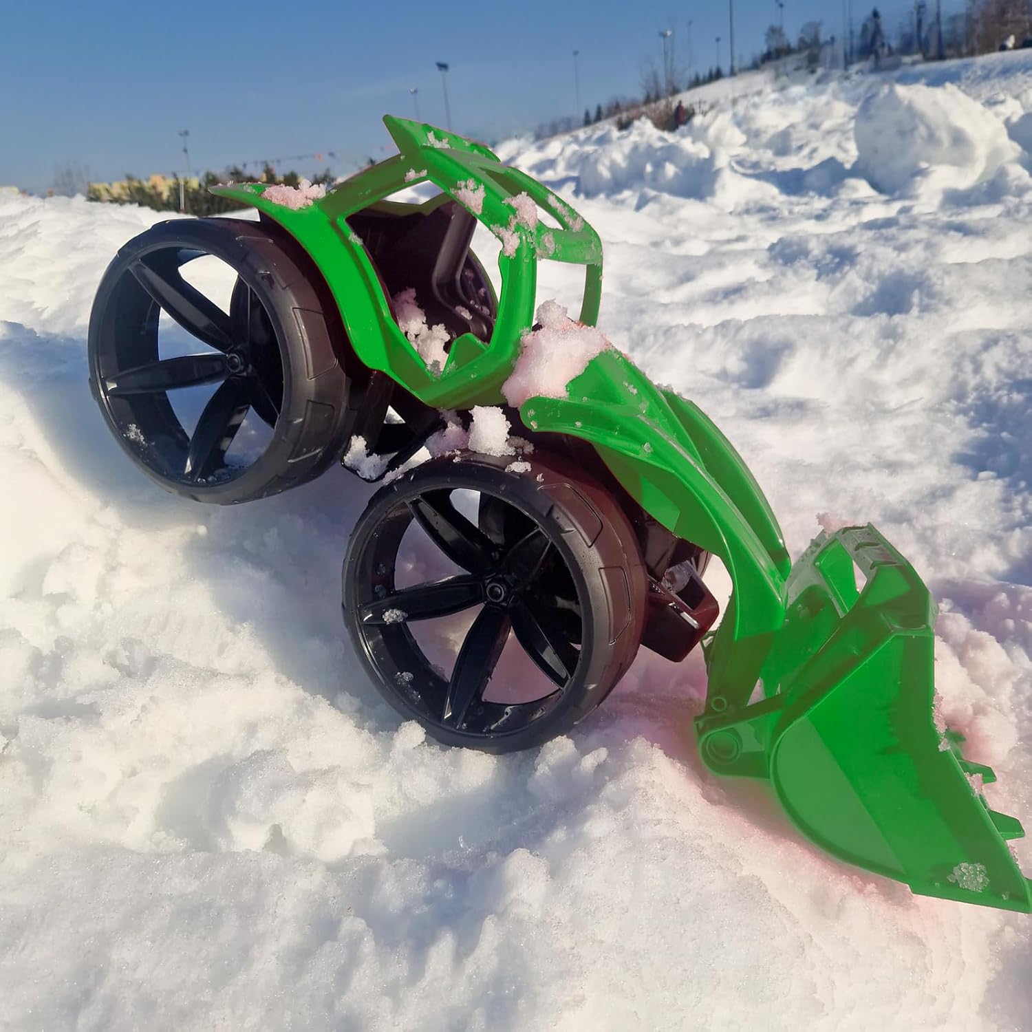 With the green Maximus tractor, toddlers 12 months and older can already imitate their big idols. The tractor measures approximately 68 x 33 x 31 cm and is equipped with extra large tyres. The construction vehicle allows toys, sand or pebbles to be transported from A to B. In combination with other toys and vehicles from WADER, boys and girls can reproduce many imaginative situations. Thus, motor skills, coordination and social behavior are encouraged and the child's imagination is stimulated. The toys are made of sturdy plastic, do not contain any harmful substances, are of high quality and therefore have a long service life.