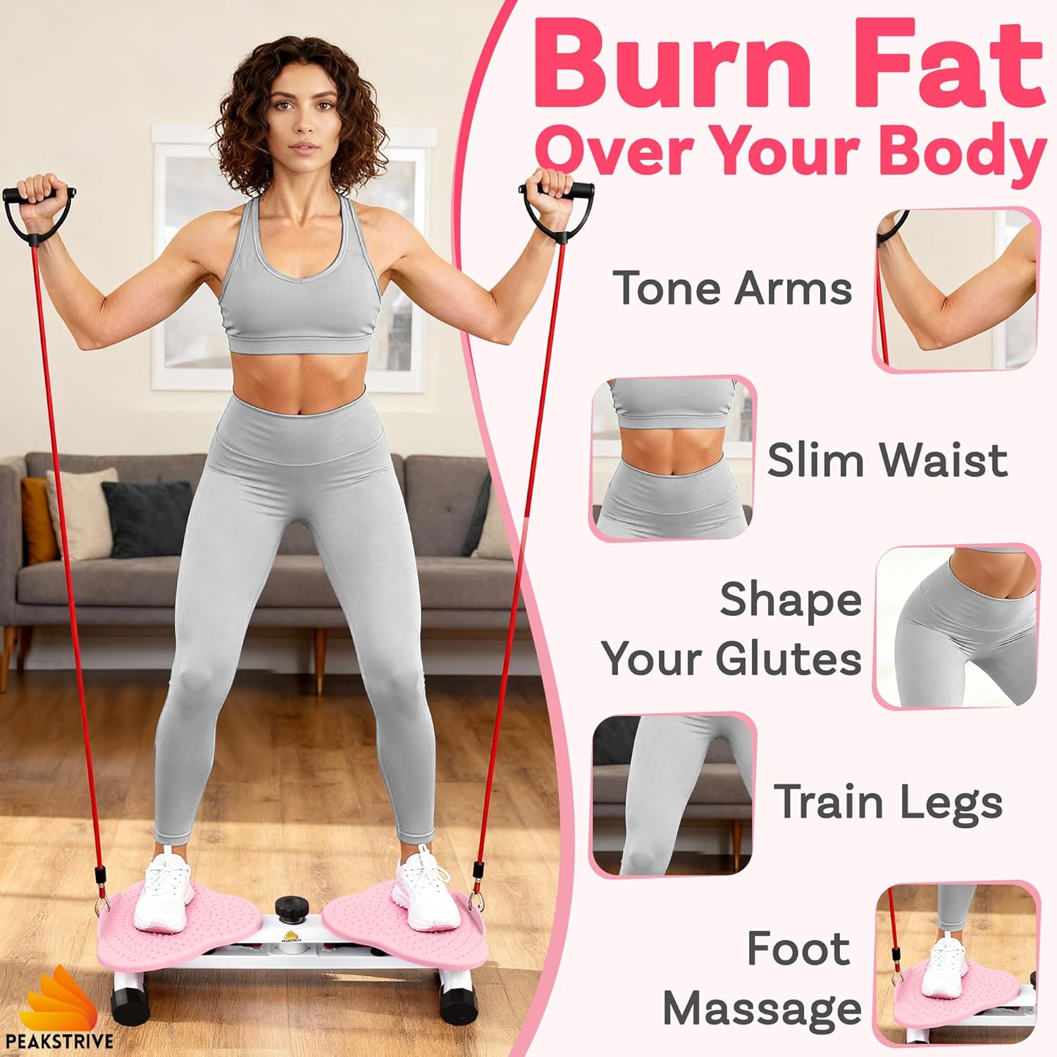 Elevate your home workouts with the PEAKSTRIVE Manual Waist Twisting Disc, a silent yet powerful tool for toning your waistline and boosting core strength. This compact fitness board promotes balance, agility, and flexibility while helping reduce belly fat and improve posture. The 360° spinning motion engages your core and lower body with every twist, while the included resistance bands bring upper-body training into the mix.No power? No problem. With its friction-free manual design, this board offers silent and smooth rotation, perfect for apartments or shared living spaces. Built from durable ABS plastic with a textured anti-slip surface, it’s designed for stability, safety, and long-term use. Whether you're looking to lose inches around your waist or add intensity to your daily routine, PEAKSTRIVE brings the gym to you—compact, effective, and noise-free.
