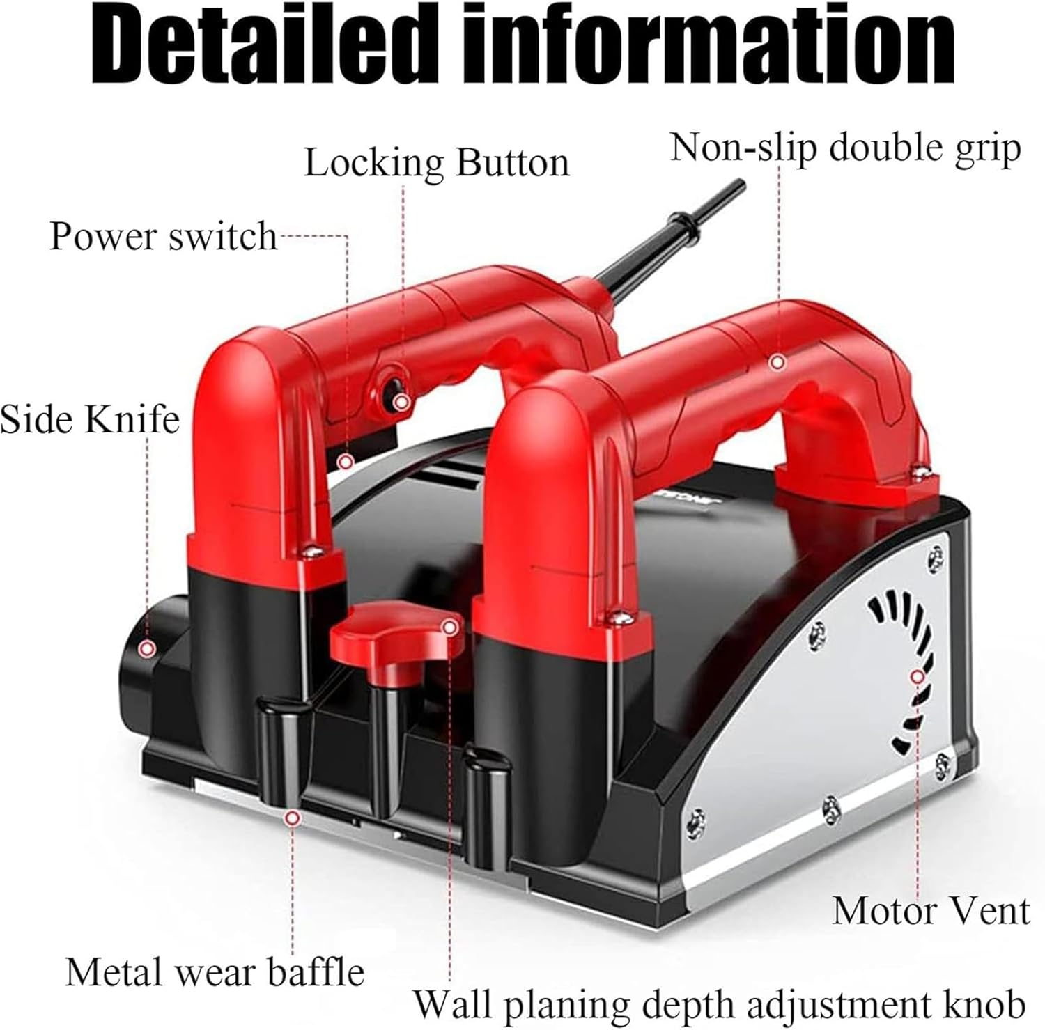 Do you still have your walls in hand? If you have to renovate your own house, it's too expensive to hire workers and you're tired of shoveling walls by hand for a day, which hurts your back and is half the effort. If you are a renovation worker, long-term manual sweeping of walls leads to excessive inhalation of dust into the lungs, which is hazardous to health. Then this electric wall shovel can solve the problems mentioned above. Whether it is an interior wall, an exterior wall, an upper wall or a dead end, it is easy to handle.Features:Name: wall planerColor: black + red.Power: 1680WSpeed: 1000-4000 rpm.Item Size: 24.5 x 22 x 16.5cm / 9.65" x 8.66" x 6.5"Weight: 5.25 kgNote:1.Please allow slight color difference caused by light and 1-3cm error caused by manual measurement and make sure you do not mind before ordering.2.If you have any questions, please feel free to contact me, I will give you a satisfactory answer as soon as possible.