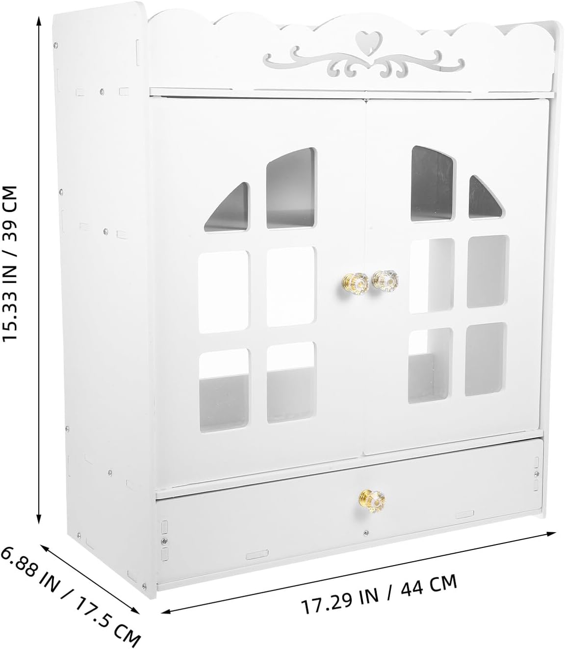Package List 1 x bathroom wall cabinet Features -Material:Plastic hanging cabinet -Color:White bathroom wall organizer -Size:44.00X39.00X17.50cm/17.29X15.33X6.88in wall mounted shelves -Product Info:Cosmetic storage rack -Not only does this storage rack provide practical storage, but it also adds a touch of elegance to any bathroom with its stylish appearance shower organizer. -The double-door design of this storage rack protects your items from dirt, ensuring that it stay organized and in good condition wall organizer. -This bathroom organizer is designed to efficiently store a variety of bathroom essentials, making it the perfect solution for keeping your bathroom tidy and organized cabinet organizer. -With its versatile design, this wall-mounted storage rack can accommodate a wide range of items, including cosmetics, toiletries, and other bathroom supplies storage shelves. -Made from plastic materials, this wall-mounted wall cabinet is built to last, ensuring use and durability shelves bathroom.Goods Descriptionbathroom racks Its versatile design allows you to store a variety of items, including makeup, toiletries, and cleaning supplies.bathroom shelves wall mounted Looking for a way to keep your bathroom clutter-free? This wall-mounted storage rack is the answer