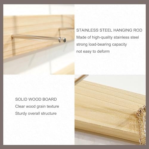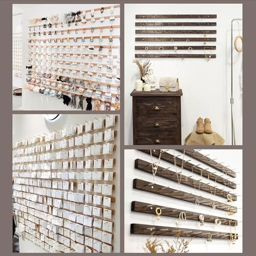 Upgrade your jewelry organization with this set of 6 wooden jewelry stands, designed for effortless display and selection of necklaces, earrings, and bracelets. Each stand is crafted from smooth, sanded solid wood, adding a touch of elegance to any space while keeping your accessories neatly arranged. 1. **Maximize Space**: These wall-mounted jewelry racks are perfect for optimizing storage in dressing tables and countertops. They keep your necklaces, bracelets, and earrings visible and easily accessible, making everyday selection a breeze. 2. **Versatile Hook Options**: Each rack comes with a varying number of hooks, allowing you to customize your display according to your collection. With 8cm long hooks, they are ideal for hanging earrings, key chains, rings, and other fine jewelry, accommodating a variety of accessories. 3. **Flexible Installation**: Choose from multiple installation methods, including glue, nail-free adhesive, and traceless nails. This flexibility ensures that you can select the best option for your needs while providing strong support for your jewelry. 4. **Stylish and Functional**: Available in walnut and natural wood colors, these racks are suitable for a wide range of environments, including jewelry stores, retail shops, clothing boutiques, bedrooms, bathrooms, and malls. They serve as an attractive solution for organizing bracelets, earrings, necklaces, rings, and other small items. This wooden necklace and bracelet storage rack set not only enhances your decor but also adds value by streamlining your jewelry organization. Each rack measures 60cm long x 4cm wide with 7 hooks or 90cm long x 4cm wide with 11 hooks, making them practical for any jewelry enthusiast. Elevate your storage game today!
