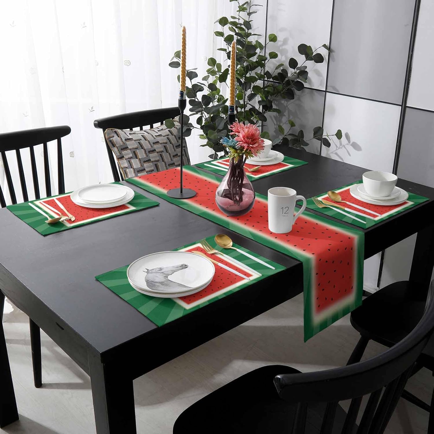 Table Runner and Placemats Set of 6 for Dining Table Kitchen Farmhouse Decor Package & Size Avaiable: 1 Pcs 13x70 inch Table Runner + Placemats Set of 6 (13" W x 19 L") 1 Pcs 13x90 inch Table Runner + Placemats Set of 6 (13" W x 19 L") 1 Pcs 16x72 inch Table Runner + Placemats Set of 6 (13"" W x 19 L"") Standard size placemats kits fit kitchen table,dining table,family daily use,business office,BBQ,picnic,hotel,more tables. Material: Premium heavy duty vinyl cotton woven linen fabric exquisite placemats with table runners.Eco-friendly,Durable,Non-slip,Non-stain,Non-fading Design: Our Table Mat set have a fun,simple and elegant print design,like farmhouse,flage,elegant,floral,vintage,rustic,beach,landscape,animal,countryyard,modern Good Protection and Good Decoration Placemats for dining table decorate your table in a low cost way,add a touch of style,perfect for holiday,Christmas,Wedding,Baby Shower,Birthday,Thanksgiving Day,Gathering,housewarming,Indoor&Outdoor activities. Protect your table from scratches and stains.Oil-proof,Wrinkle-Resistant,Shrink-Proof,Heat Resistant,Stain Proof
