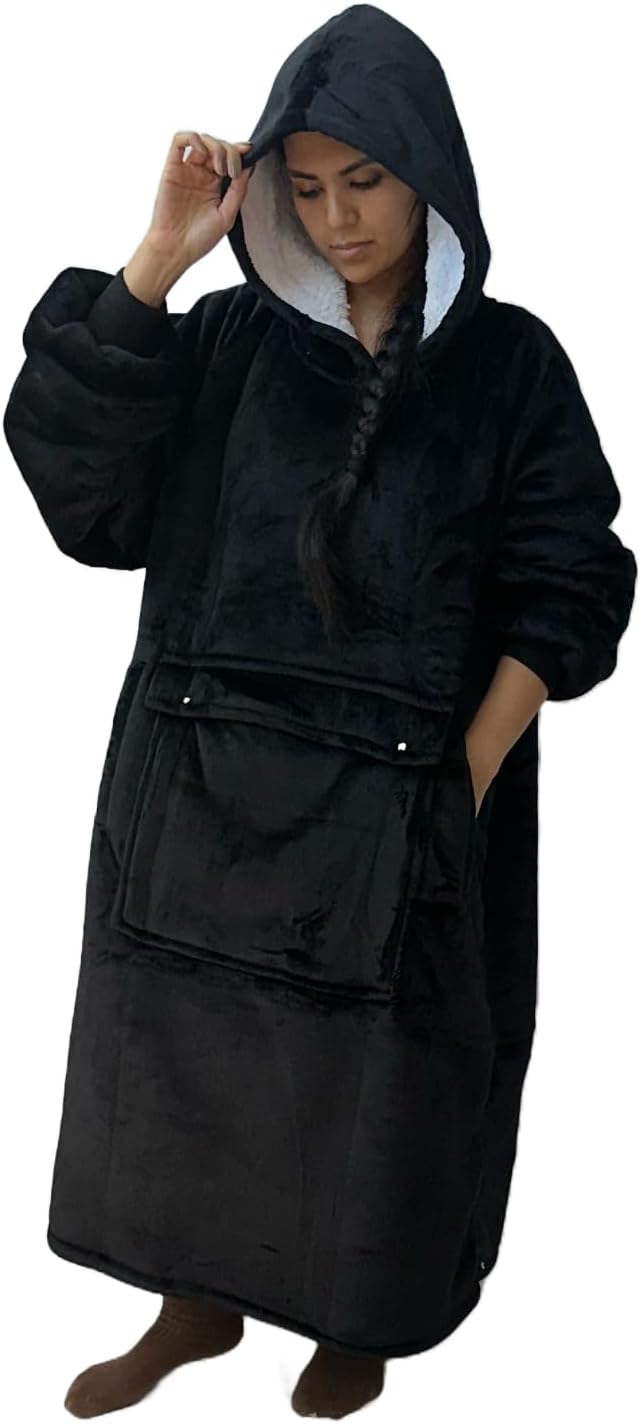 Giant Marsupial Pouch with Silver Magnetic Buttons, Two Deep Side Pockets, Spacious Hood, Super Soft Sherpa Inside, Super Fluffy Fleece Outside.