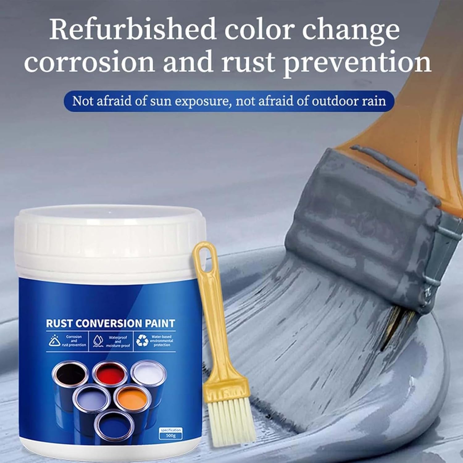 Features: 1. Stronger & Lasting — Provides long-term rust protection for indoor and outdoor use 2. Fast-Drying — Dries quickly for faster project completion 3. No Peeling — Delivers a smooth, durable finish that stays in place 4. Multi-Surface Use — Works on metal, wood, and concrete surfaces 5. Easy to Apply — Water-based formula, safe for home or industrial use Specifications: Product Name: 4-In-1 Rust Converter Paint for Metal Material: Water-Based Primer & Topcoat (2-in-1) Color Options: White, Black, Grey, Blue, Green, Red Available Sizes: 300g / 10.6 oz – covers approx. 2–2.5 sq.m (21–27 sq.ft) 500g / 17.6 oz – covers approx. 3–4 sq.m (32–43 sq.ft) 1000g / 35.2 oz – covers approx. 6–8 sq.m (64–86 sq.ft) Shelf Life: 3 Years Storage Instructions: Store in a cool, dry place away from direct sunlight Package Includes: 1 Set * Water-Based Metal Rust Inhibitor Paint 1 Set * Application Tool Kit (Includes gloves and brush) Usage Tips: No mixing required—ready to use right out of the container Clean the surface before application for best results Suitable for railings, fences, auto parts, gates, pipes, tools, and more Allow adequate drying time between coats if layering Notes: Please allow slight variations (1–5g or 1–2cm) due to manual measurement Color may appear slightly different due to lighting and screen differences