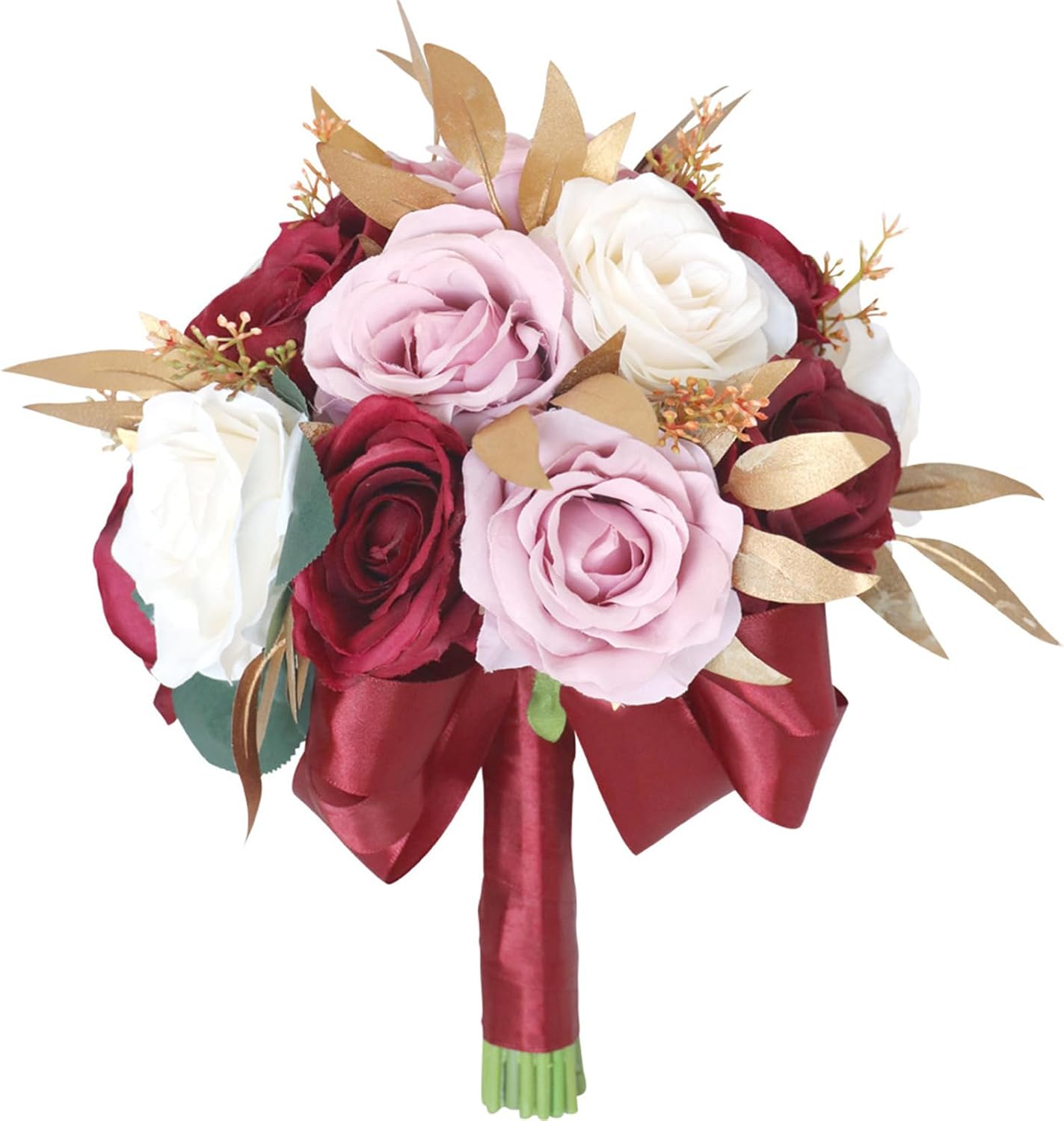 • Material: This bride bouquet is made of silk flowers and artificial green leaves, which makes realistic fake flowers look like a fresh rose. The handle is wrapped in satin with a comfortable hand feel.