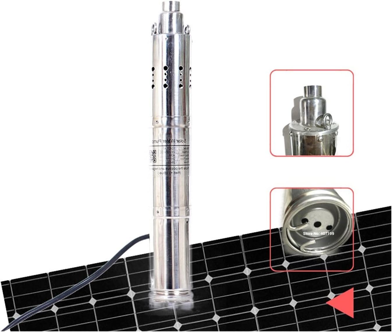 We will always provide you with our professional advice, as well as satisfactory and fast customer service. Specification: Max head:50m Max flow:2000L/H Operating voltage range:18v~45v Protection class:IP68 Outlet inna dia:32mm Body dia:76mm Wire length:1m Material:Stainless steel 304 Water shortage protection:Yes Operation life:20,000 hours Recommended solar panel:24 volt 750w~1400w Working lift:30~50m Recommended wire size:4mm2(1~30m) / 10mm2(longer than 40m) Caution: Do not mix the positive(+) and negative(-) connection. Idle solar water pump and is strictly prohibited The pump should be fully submerged. 6mm2 or 10mm2 wire is required if the cable is longer than 30m. The diameter of the pipe connected to the pump must bigger than 25mm. Don't block or bend the pipe/ outlet/ intake Damage caused by the above is not coverd by the PS: As for the pump cable, we have two different kinds of cable colour, one is black color and anonther is yellow color. and the cable color is at random when we deliver. So maybe you will received the pump with black color cable. or you will received the pump with yellow color cable. Hope you can understand.