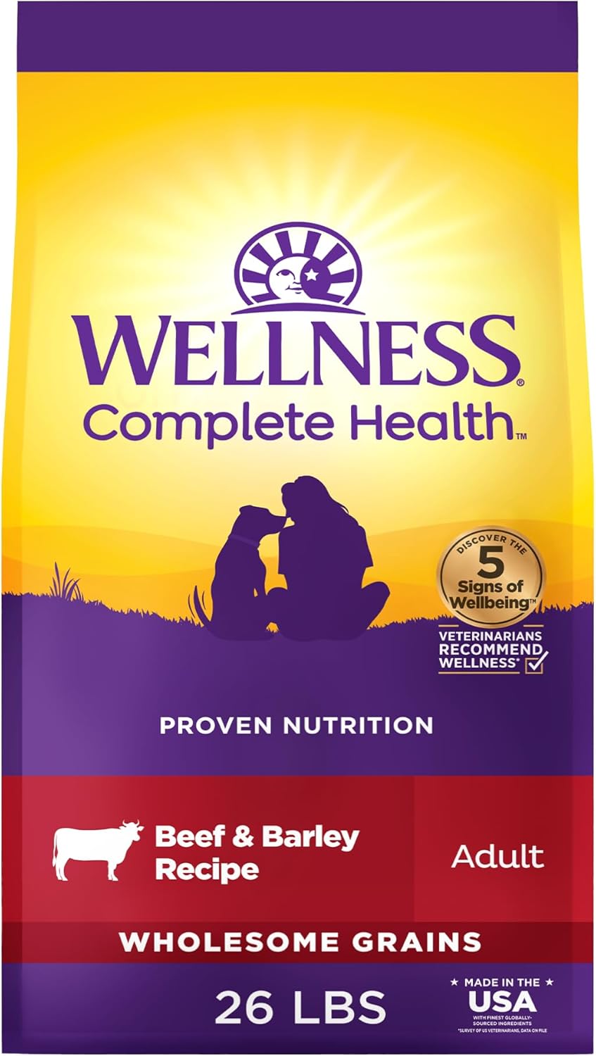 Wellness Complete Health natural pet food is made with carefully chosen, authentic ingredients for everyday health. An optimal balance of nutrient-rich whole foods to fulfill the unique health needs of your dog, providing whole-body nutritional support to promote complete health. Supported by omega fatty acids, antioxidants, glucosamine, probiotics and taurine for a healthy heart. Scientifically crafted by our team of veterinarians and scientists to provide nutrition for a lifetime of wellbeing. Easily add our food to your dog food storage container for a fresh scoop of dog food every time. Your small dog, large dog, senior dog, adult dog or puppy will love our tasty grained and grain free dog food options. We produce our high protein dog food in the USA with globally sourced ingredients. Whether you're looking for lamb dog food, chicken dog food, salmon dog food, or whitefish dog food, there is a recipe for you! Try our entire portfolio of high quality dog food today.
