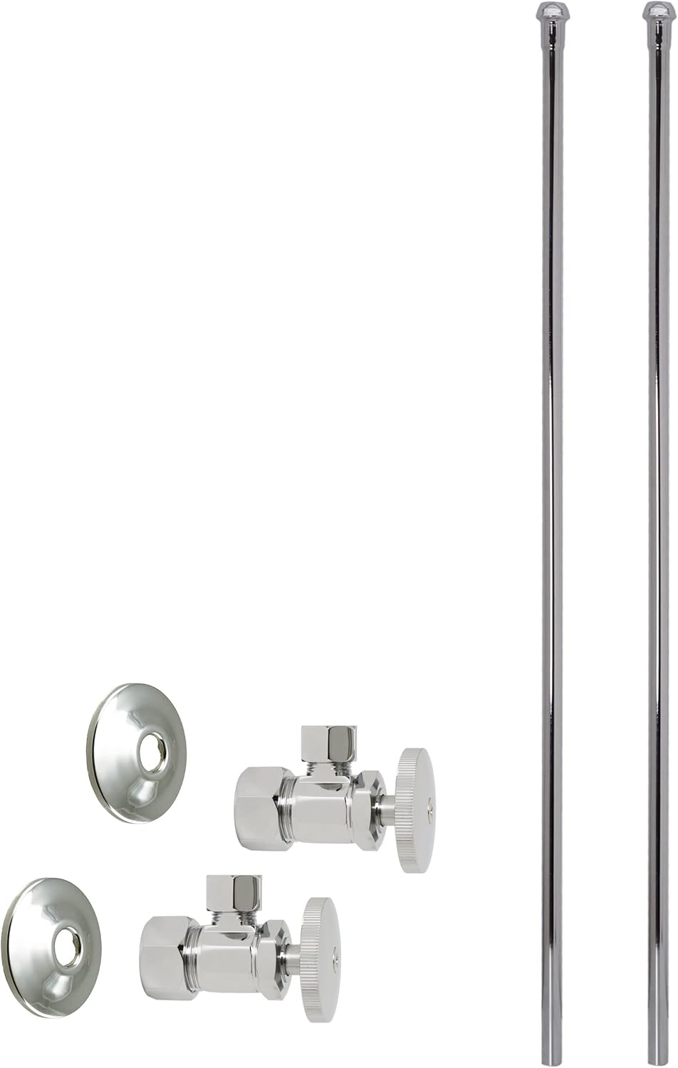 Product Description This Angle Stop Kit with Round Handles is the perfect compliment for sinks in your bathroom or kitchen. It uses a 5/8 in. OD (1/2 in. Copper) Inlets with a 3/8 in. OD Compression outlets with nut and ferrule. The kit features a 20 in. Bullnose faucet riser. The valves use traditional compression closure for positive seal. Available in a variety of stylish finishes, this item is sure to complement your existing fixtures. Be sure to check out our other model styles and VISIT OUR WESTBRASS STOREFRONT for more Kitchen and Bath items to stylize your home with convenient functionality and beauty. From the Manufacturer Westbrass was founded in 1935 by two brothers, Jack and Aaron Kagan, to serve the needs of all plumbing wholesalers on the West Coast. The product lines at the time included items such as faucets, valves, malleable fittings, etc. After becoming the premier distributor of plumbing products, the company was bought in 1985 by Max Homami. Seeing a boom in the Home Improvement Industry, Mr. Homami had a vision to make Westbrass the leader in Kitchen & Bath Accessories. The company currently manufactures its own products made of the highest quality materials. In order to ensure the excellence in the industry, these products are made to pass the highly stringent requirements of NSF, IAPMO, ADA and many other regulations. The Los Angeles-based company now sells a wide range of Plumbing Specialty Products, Bath Waste & Overflows, as well as Decorative Kitchen & Bath Accessories worldwide. Westbrass holds several patented items including the Deep Soak Overflow designed for extra-deep soaking in most bathing-wells, the Closing Linear overflow and several other intellectual properties. The customer base includes kitchen & bath showrooms, plumbing wholesalers and supply houses, OEM and ODM companies, as well as several national home centers.