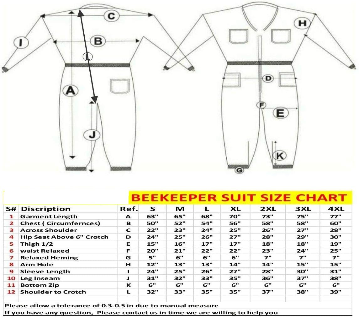 White Beekeeping Suit 3 layer mesh for Beekeepers Gloves & Bee VeilVentilated Full Body Protection Beekeeping Suit Sting Proof 3 Layer Mesh & Free Matching GlovesThis premium beekeeping suit, crafted in Pakistan, is designed for maximum comfort and protection. Made from a durable, three-layer ventilated mesh fabric, this suit ensures excellent airflow and keeps you cool while working with your bees. Whether you're a seasoned beekeeper or just starting out, this suit provides superior sting protection.Features:High-Quality Material: Keeps you cool and comfortable during hot weather.Ultra-Light Weight: Comfortable to wear for extended periods.Full Protection: Includes a detachable fencing hood with a mesh veil for clear visibility and full head and neck protection. Durable stretchy thumb straps and full-length gloves ensure complete hand and wrist coverage.Reinforced Pockets: Multiple pockets for storing tools and equipment.Heavy-Duty Zippers: Strong and durable YKK zippers for easy wear and removal, ensuring a secure closure.Protective Gloves: Comes with matching protective gloves to provide complete hand and wrist protection.Easy Maintenance: Machine washable for easy cleaning and maintenance.Why Choose this Suit?Don't compromise on safety and comfort during your beekeeping activities. Choose our Professional Beekeeping Suit with Ventilated Mesh Fabric and Protective Gloves to ensure you can work confidently and efficiently. Order now to enjoy superior quality and peace of mind!Sizing Guide:Please double-check the size chart before ordering to ensure the best fit. If you are between sizes, consider the adjustable features of the pants for the perfect fit. Size chart is attached with the picturesCommon Mistakes When Ordering the Product:Size: Select the exact size before placing the orderGuessing Your Size: Always take the latest and actual measurement instead of estimating.Order Detail:1. 1 Beekeeping Suit2. 1 Fencing Veil3. 1 Pair Matching Gloves Free