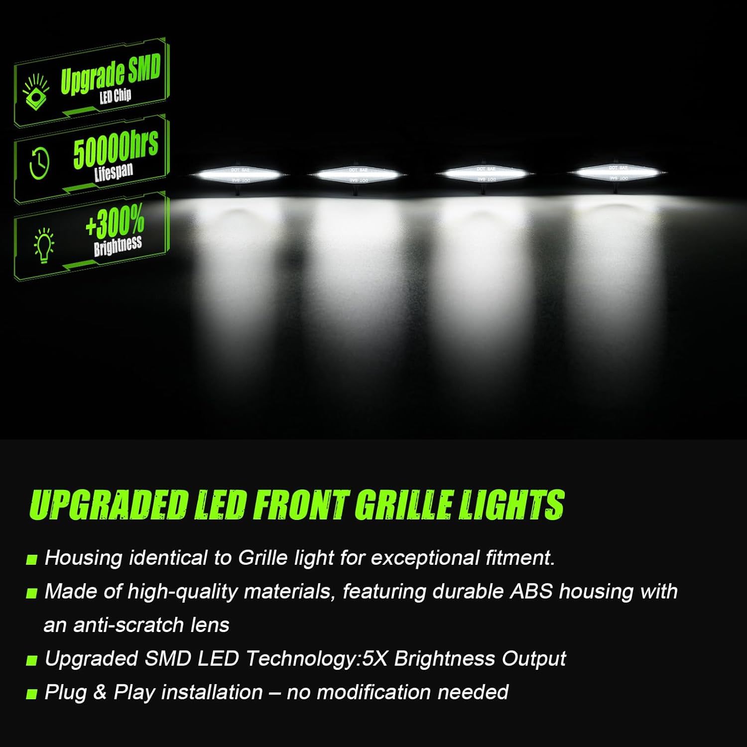 | Included Components | 4PCS LED Grill Led Lights |
