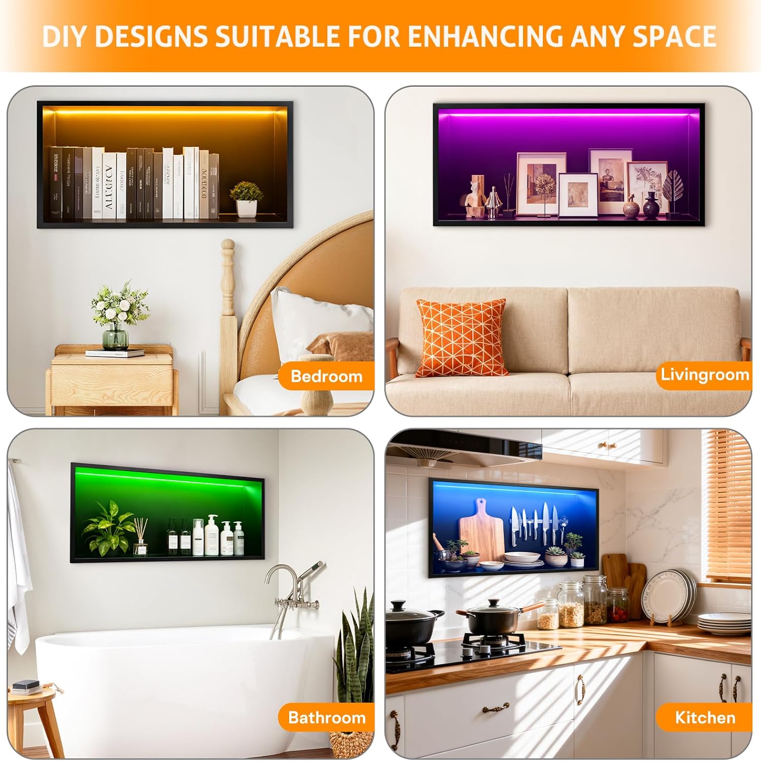 WICHEMI Stainless Steel Shower Niche No Tile Needed Wall Niche with Light, Recessed Shower Shelf for Bathroom Storage Over Mount Installation (24" X 12" RGB + 36" X 12" Warm White)