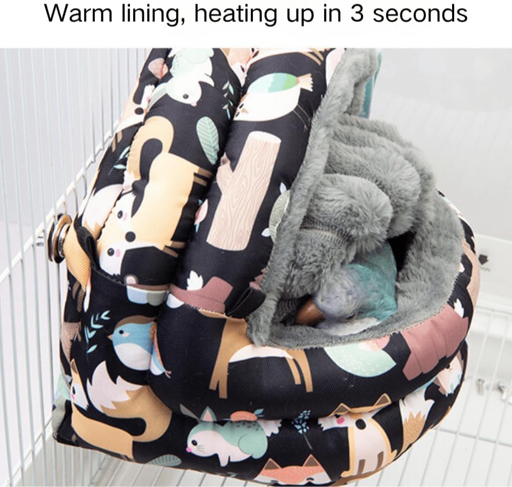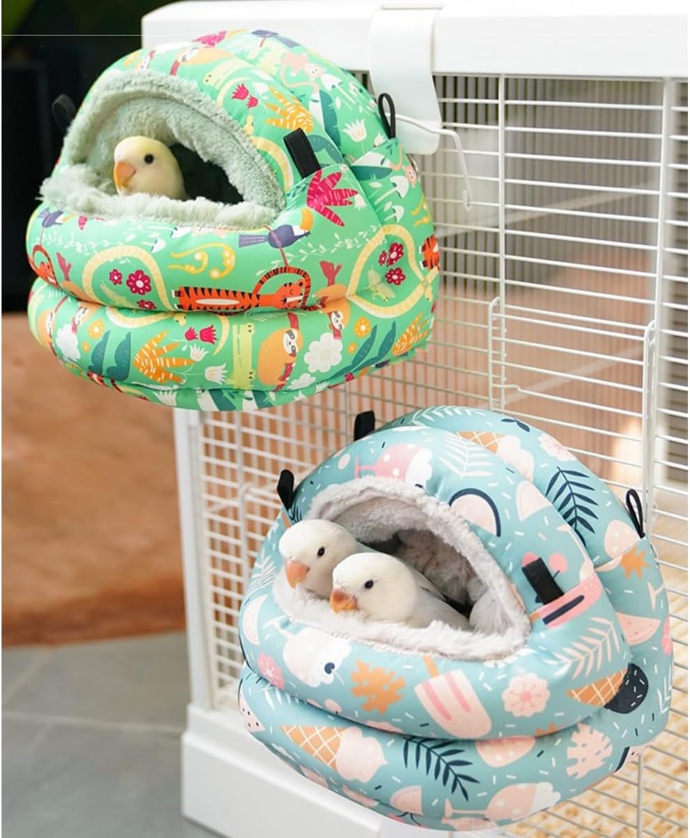 Product Material: High-quality polyester fabric Size: There are 3 sizes in available about the parrot sleeping bed. Please choose a suitable size based on the cage size and bird shape. Size Small: 17x15x15cm/6.7x5.9x5.9inch, suitable for lovebird, budgie, conure, peony parrot, etc. Size Medium: 21x18x18cm/8.2x7x7inch, suitable for cockatiel, parakeet, sun conure, quaker, green-cheeked conure, etc. Size Large: 25x21x21cm/9.8x8.2x8.2inch, suitable for african grey, eclectus, cockatoo, etc. Product features: Warm and cozy, safe, non-toxic, chewable and waterproof and breathable, and does not hang parrot excrement. Package Including: 1× parrot warm nest, 1 x cozy cotton pad, 1 accessory set.