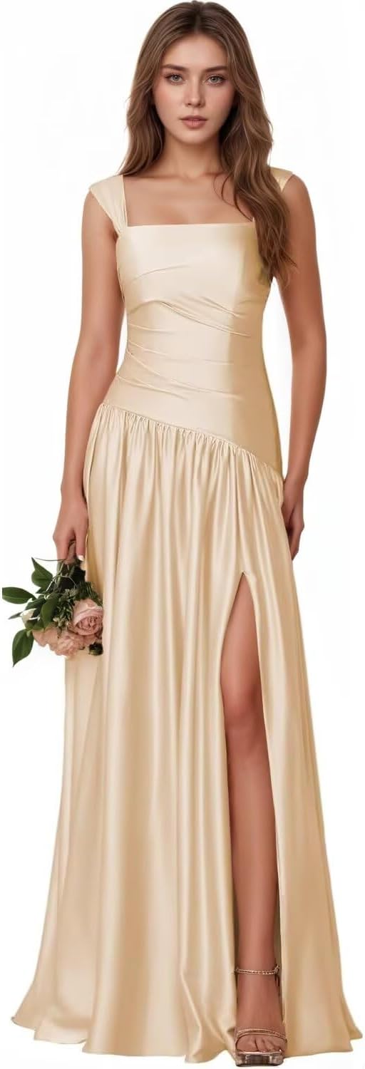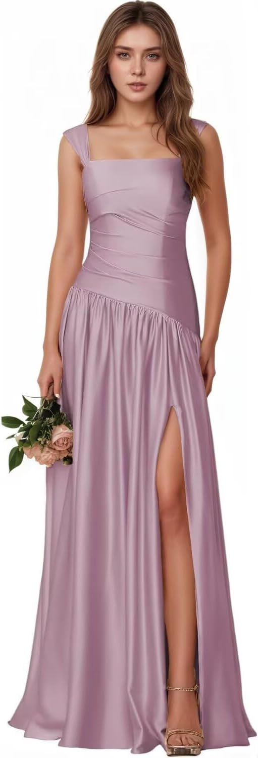 Luxurious & Comfortable Fabric Crafted from lightweight satin, this bridesmaid dress offers a glossy, elegant finish while remaining breathable and comfortable. The fabric blends the rich texture of satin with the soft drape of chiffon, ensuring a flattering and graceful look. Perfect for Any Special Occasion This versatile formal gown is ideal for: Bridesmaid dresses Wedding guest attire Prom dresses and homecoming dresses Military balls and black-tie galas Cocktail parties Birthdays, graduations & holidays Pageants, dinners & receptions Size & Customization Check the left SIZE CHART – Do not rely on your usual size! For made-to-order dresses, provide your exact bust/waist/hips, shoulder-to-hem length, and heel height after purchase. Important Notes Color variations may occur due to lighting & screen differences. Custom orders do not delay shipping.