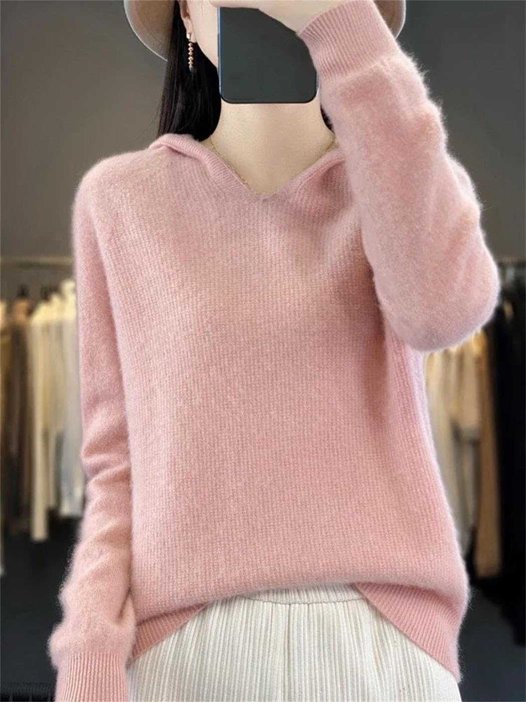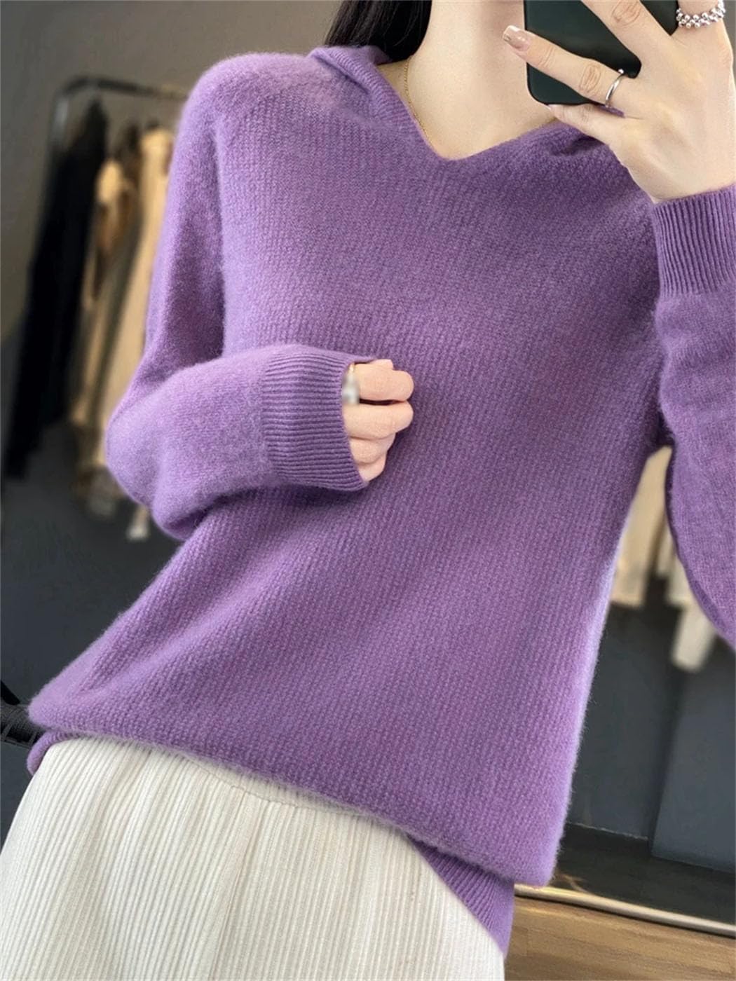 Material:WoolMaterial Composition:WoolHign-Concerned Chemical:NoneCraft Of Weaving:KnitPattern:Loose-FittingYarn Thickness:Regular YarnSeason:Autumn/WinterThickness:StandardClosure Type:NonePattern Type:SolidGender:WOMENSleeve Length(Cm):FullStyle:CasualDecoration:HoodedSleeve Style:RegularCollar:HoodedClothing Length:RegularElasticity:Medium StrecthFit Type:Regulai Fit