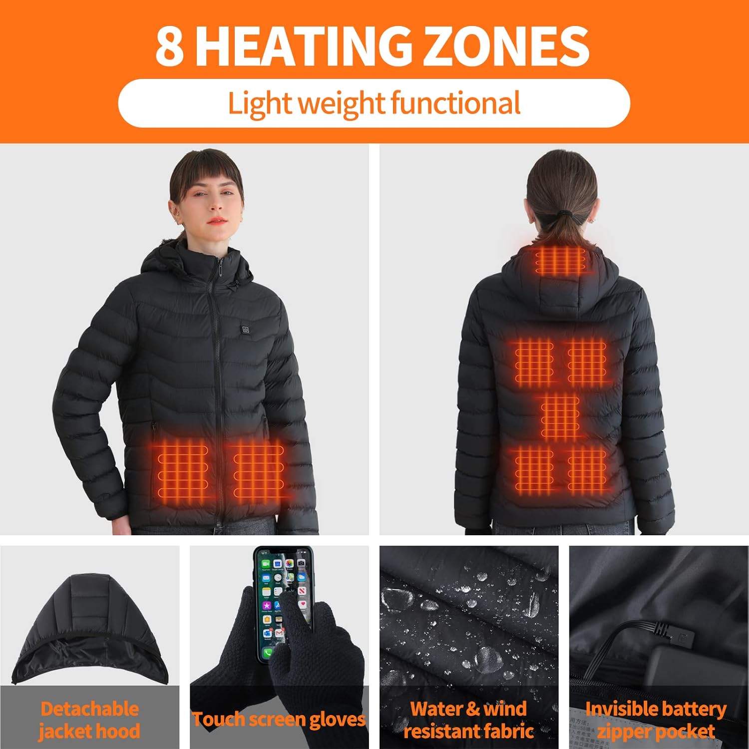 NBtoUS Womens Heated Jacket with 2PCS 10000mAh Power Bank,3 Heating Level