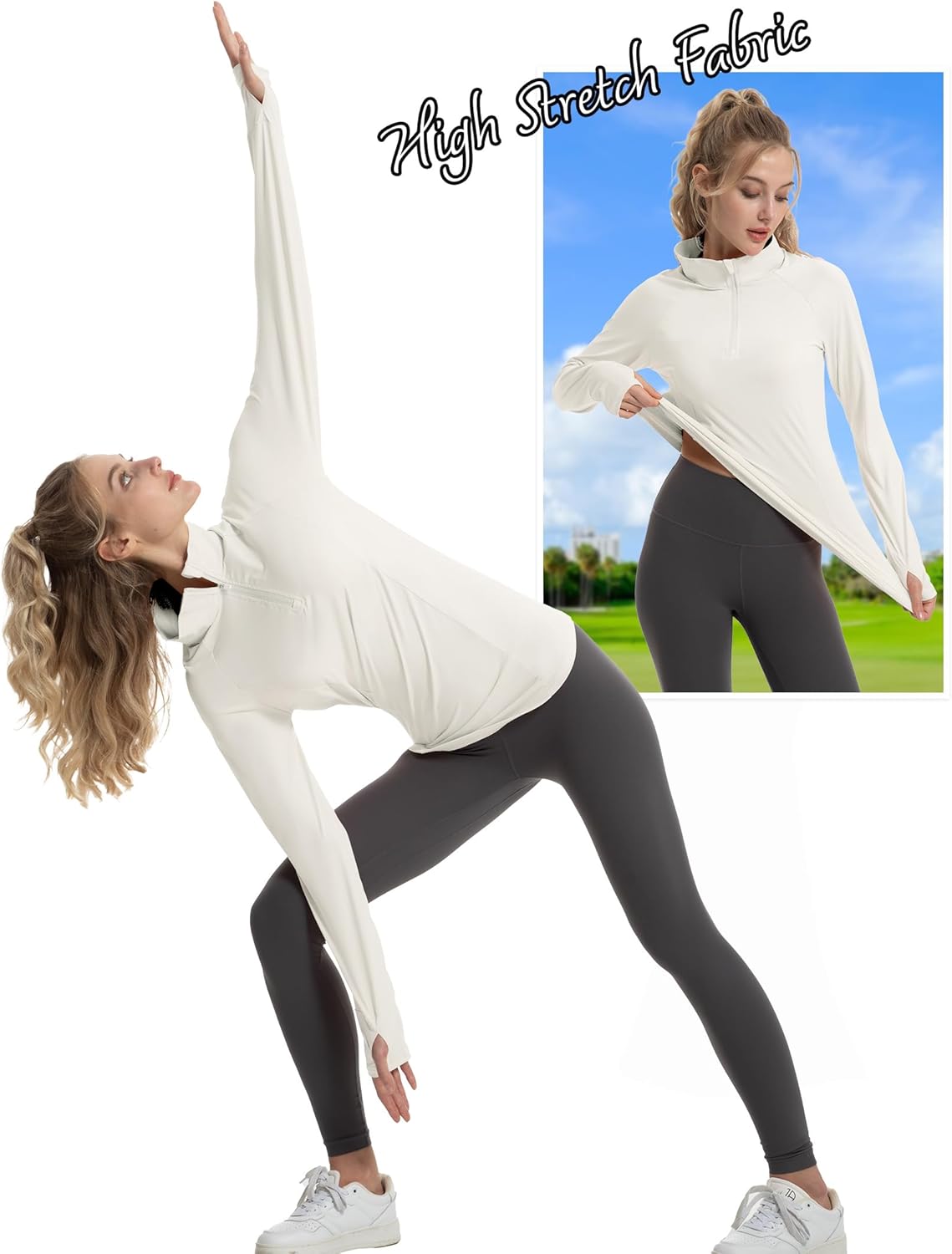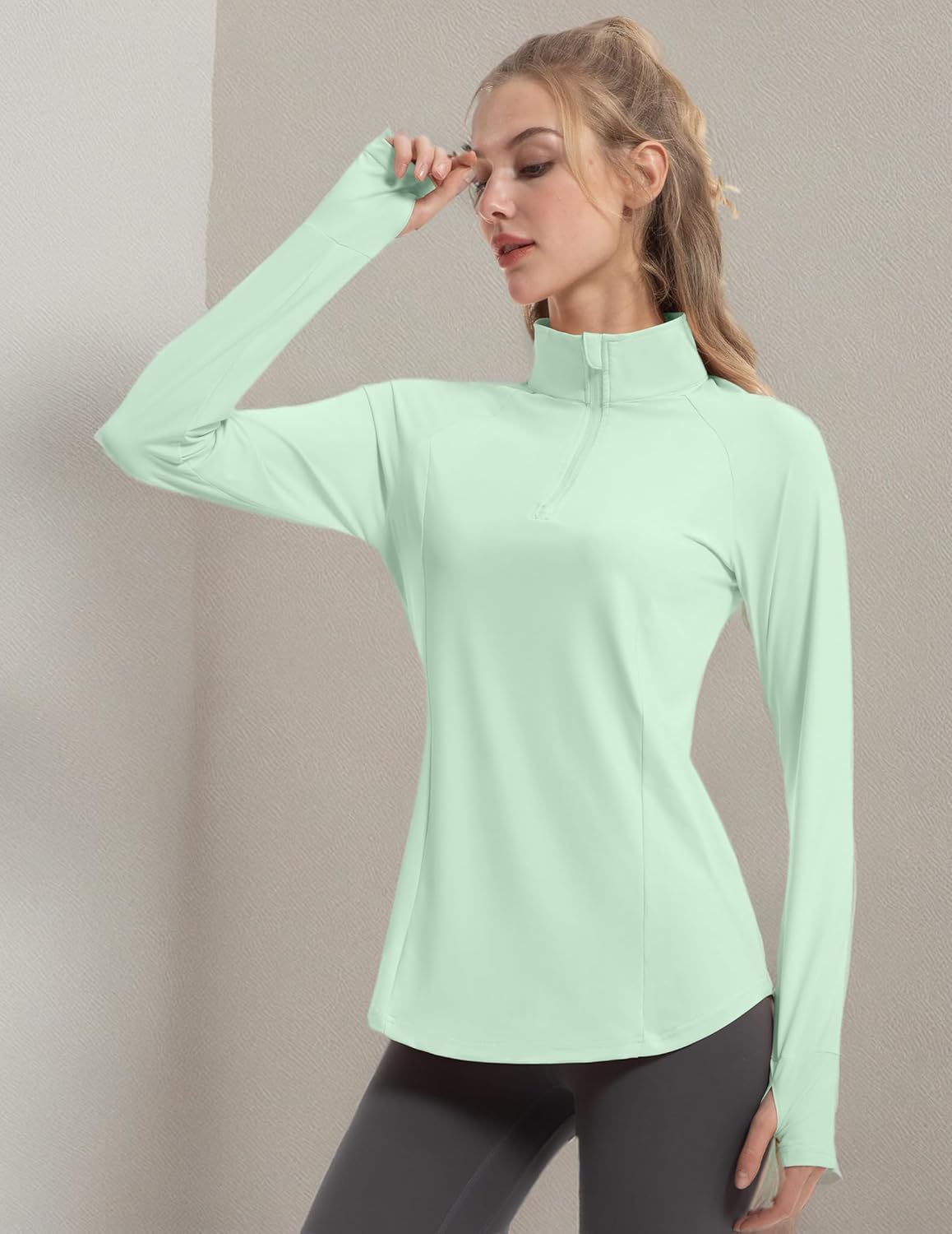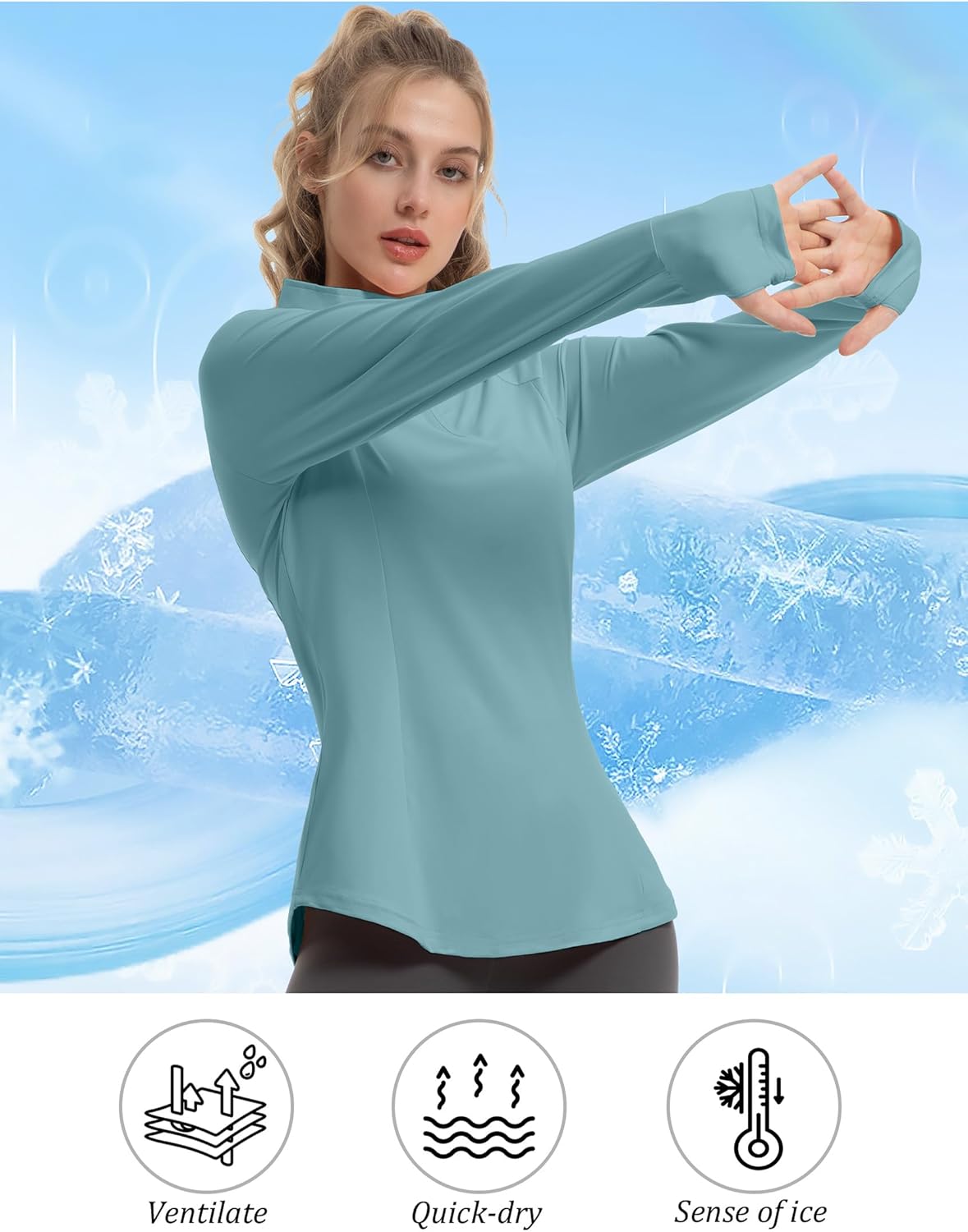 FKEEP Women's Sun Shirts Long Sleeve UPF 50+ UV Protection Top with Thumb Holes Quick Dry Lightweight for Golf Tennis Hiking (Light Blue, XS)