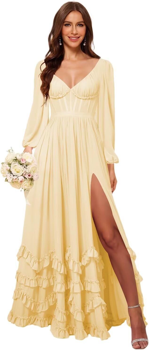 | Fabric Type | Flowy chiffon fabric & Comfy lining, Built-in bra, Fully lined |