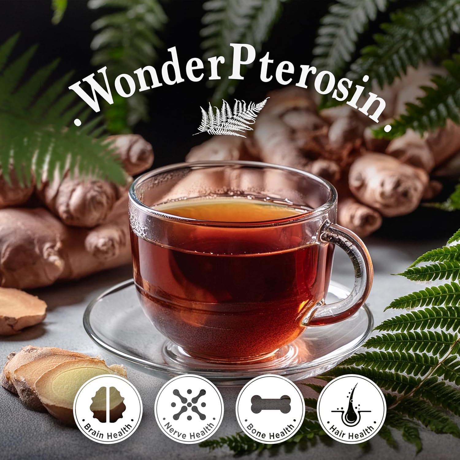 Wonder Pterosin – Pterosin & Ginger Liquid Tea, 2.37 fl oz (70 ml) x 30 pouchesProduct Features• A liquid extract with high concentrations of pterosin A, B, C, D, and N from bracken fern, with the addition of ginger • It tastes great as it contains ginger and oligosaccharides. • The factory researched pterosins contained in the rhizome of bracken fern. It has developed the original technology to safely extract pterosin from ferns.Ingredients (Note: They should equal 100% but if you calculate, the total is way over 100%) Bracken fern root (Republic of Korea) 33%, purified water 33.7%, ginger concentrate [ginger extract (Republic of Korea) 50%, oligosaccharide 50%] 30%, jujube 3.3%• Containing high concentrations of pterosins (A, B, C, D, N) from bracken fern with the addition of ginger • Non-toxic and safe for humans