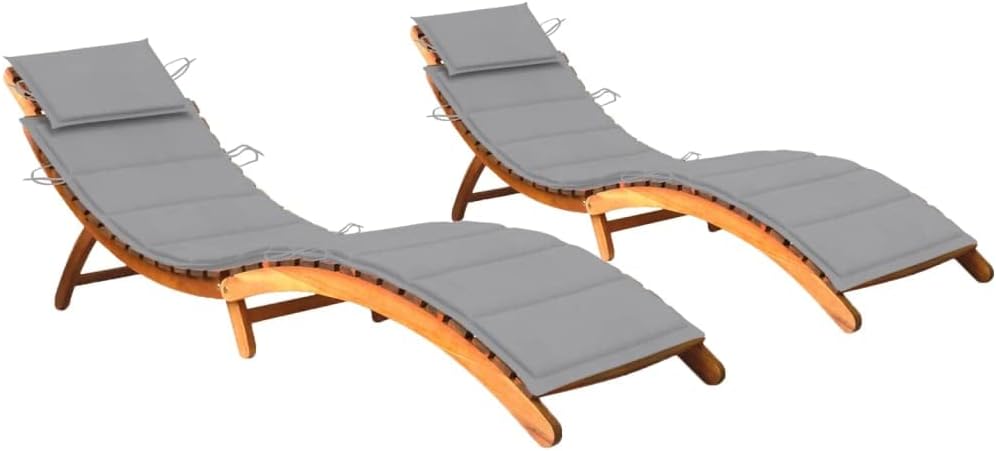 With this set of 2 wooden sun loungers, you will always have a comfortable spot to relax on your patio or in your garden. The unique wooden structure is inviting and exudes a natural charm.The sun lounger is made of solid acacia wood, which is weather-resistant and durable. As it is water-resistant, the sun bed is suitable for both indoor and outdoor use. The daybed can be folded away to save storage space when not in use. The included cushion is more than a practical addition; it also has a decorative function.Note: In order to extend the life of your outdoor furniture, we recommend you to protect it with a waterproof cover.Cushion color: TaupeMaterial: Solid acacia wood with a natural oil finishCushion material: Fabric (100% polyester)Sun lounger dimensions (unfold): 72.4" x 21.7" x 25.2" (L x W x H)Sun lounger dimensions (folded): 36.2" x 21.7" x 7.9" (L x W x H)Cushion thickness: 1.2"FoldableSuitable for indoor and outdoor useAssembly required: YesDelivery contains:2 x Sun lounger2 x Cushion